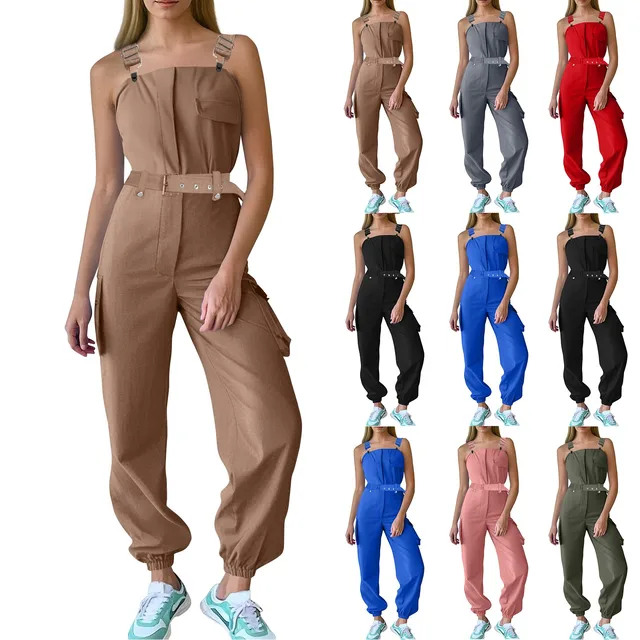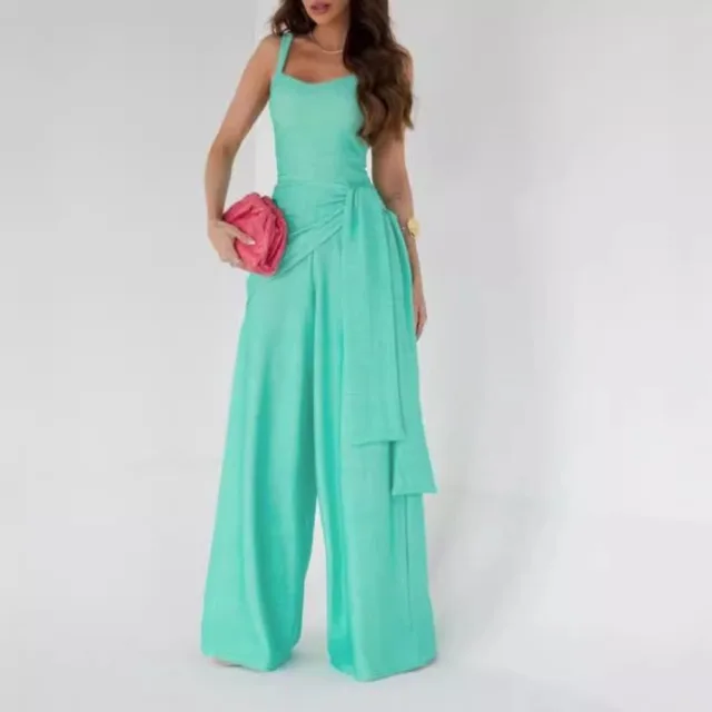 بدلة قفز طويلة برباط على الموضة للمكتب للسيدات أنيقة بدون أكمام للحفلات الصلبة بدلة لعب صيفية فضفاضة غير رسمية