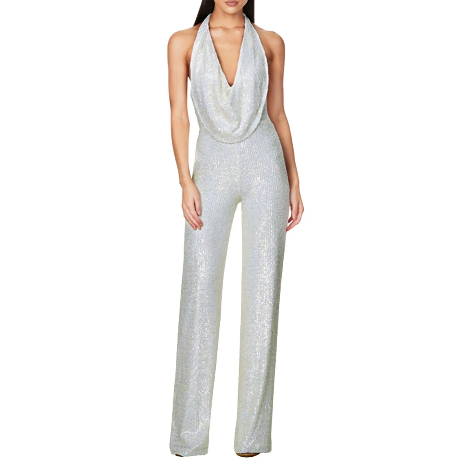 Summer New European And American Jumpsuit Lady’S Sleeveless Neck Sequin Pants Women