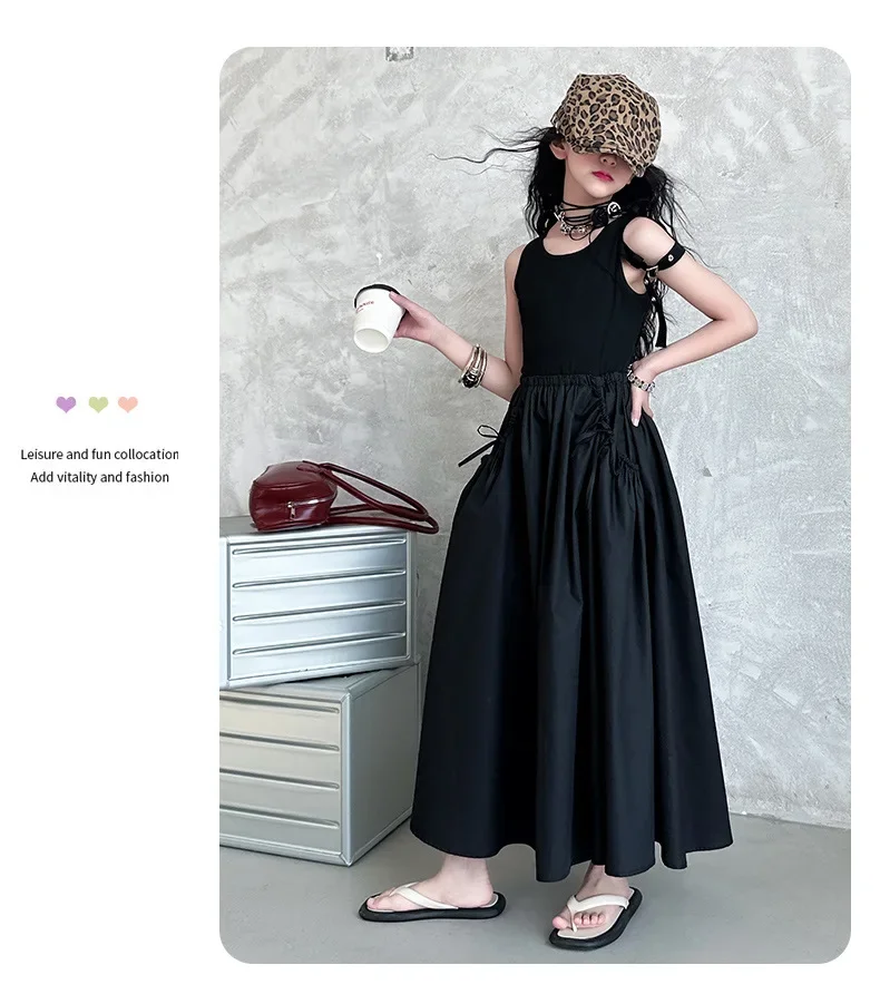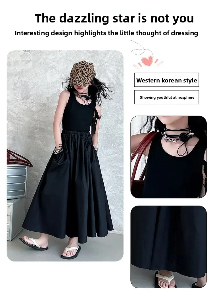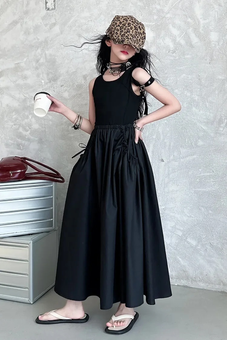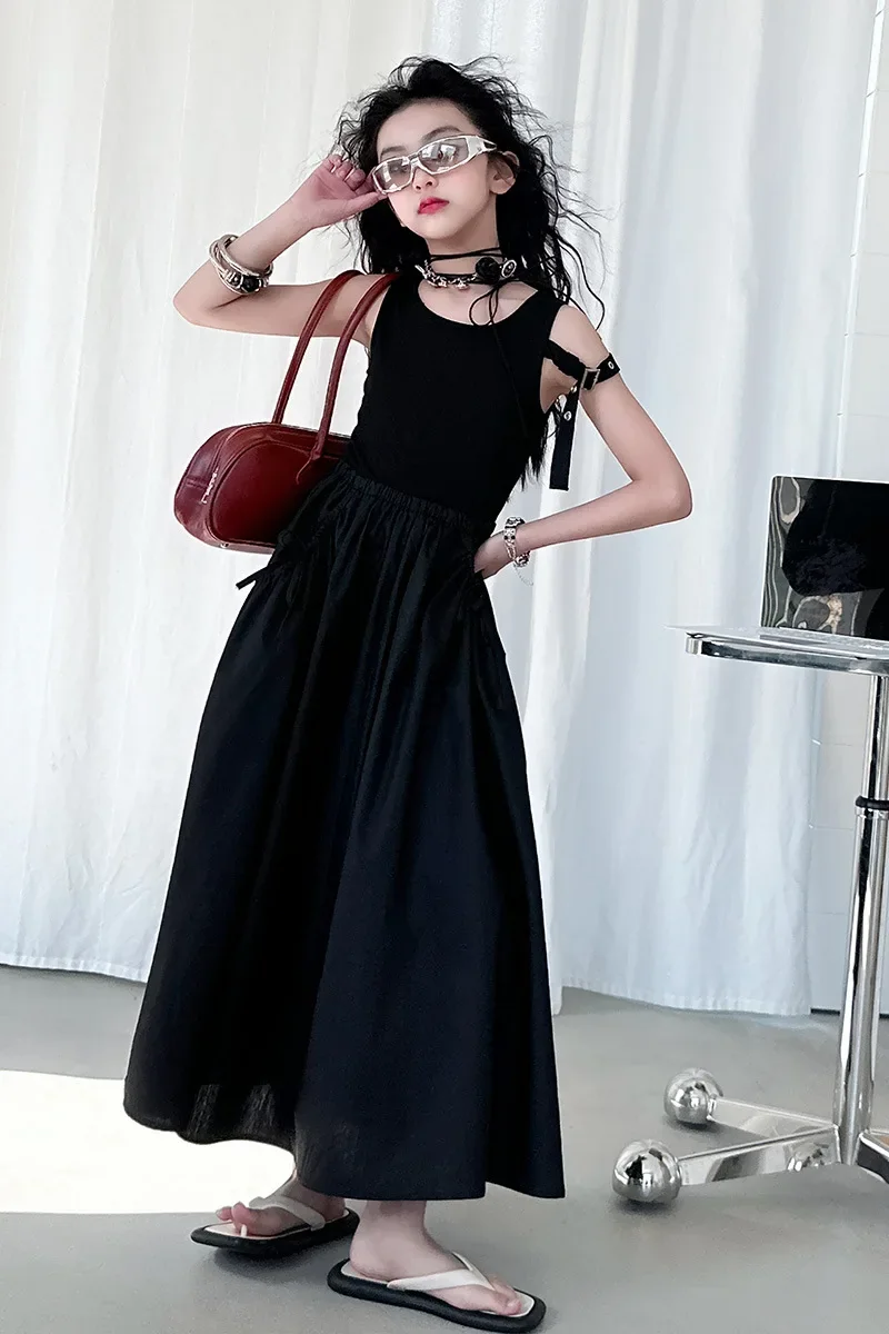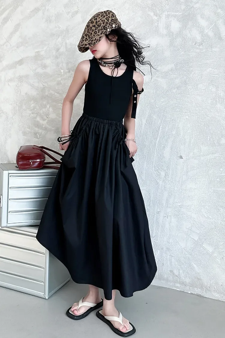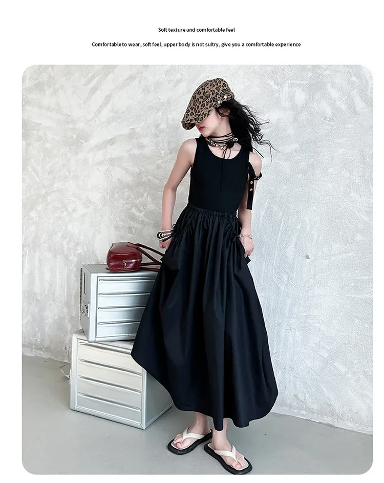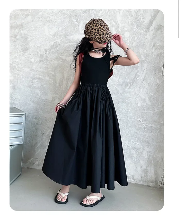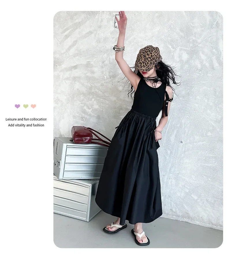 فستان صيفي عصري للفتيات بدون أكمام فستان عطلة ملابس أطفال تنورة يومية غير رسمية فستان عصري للأطفال