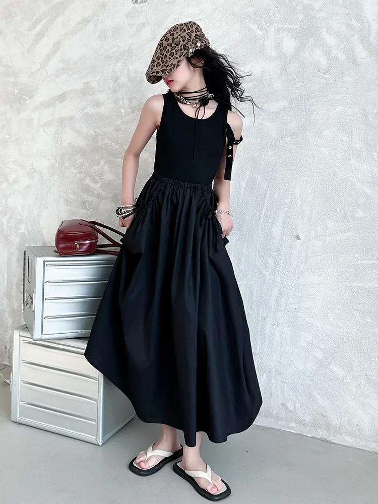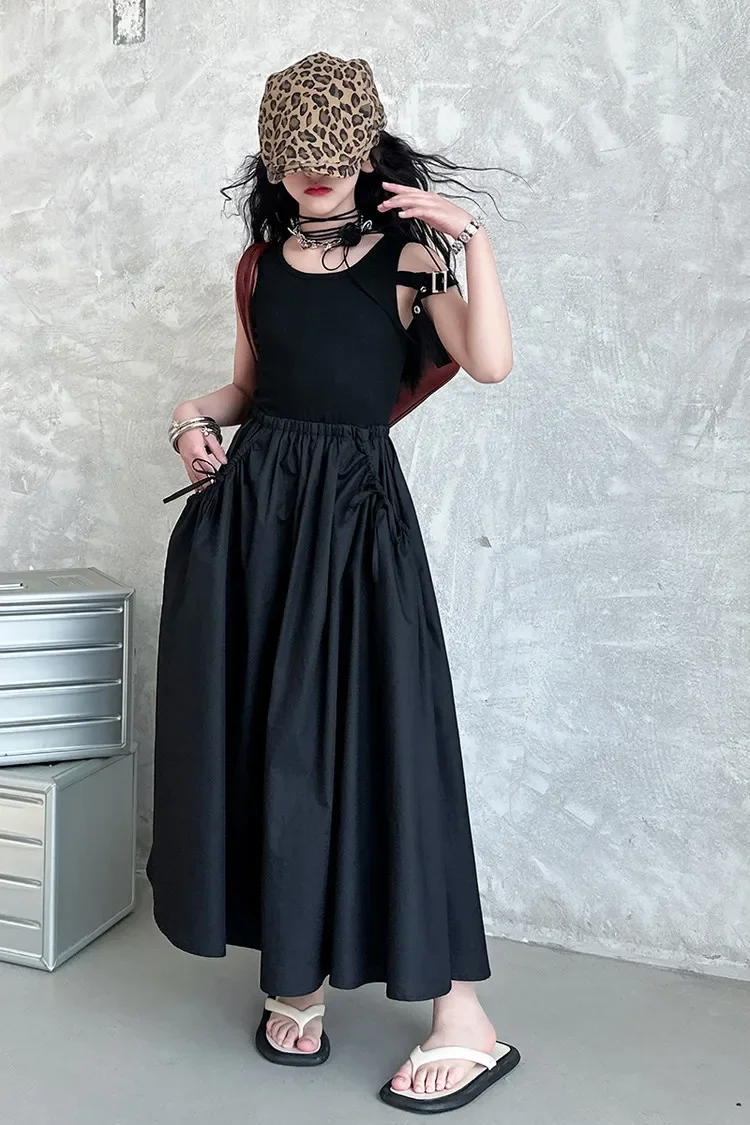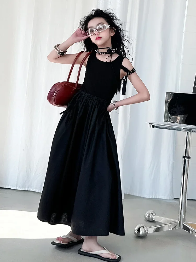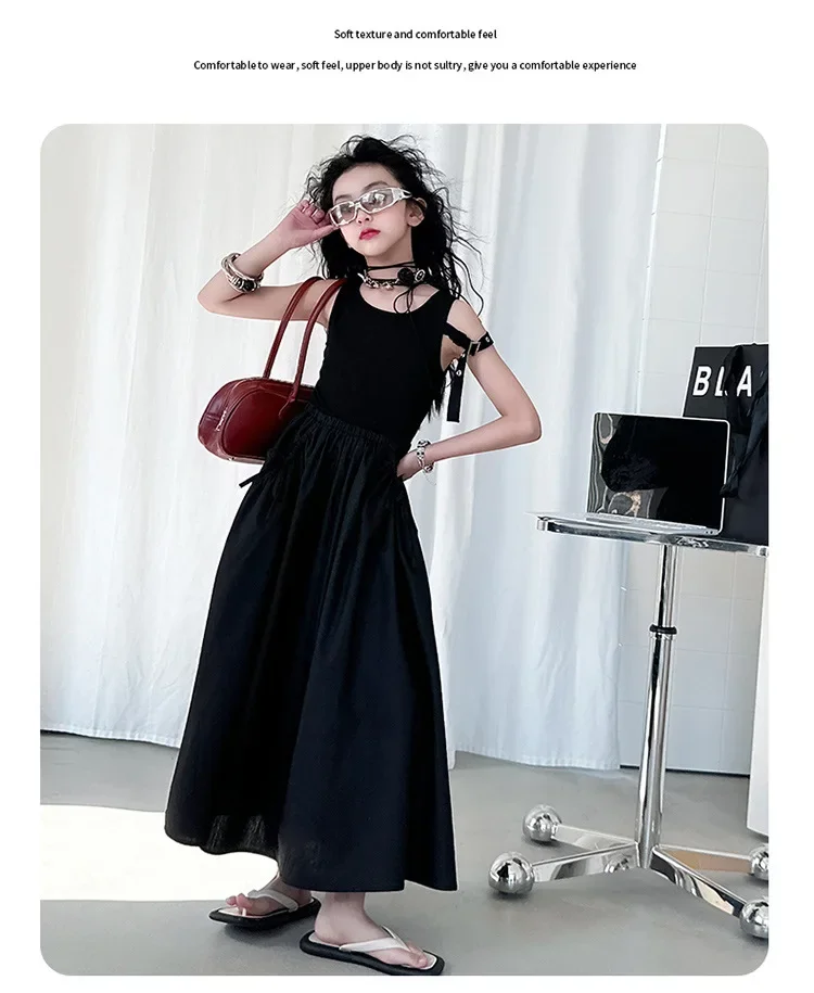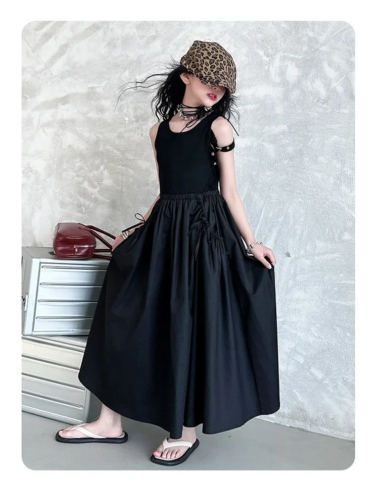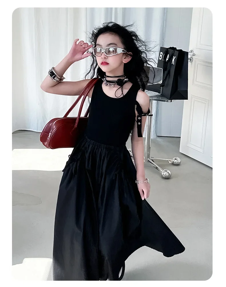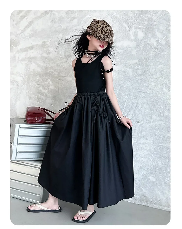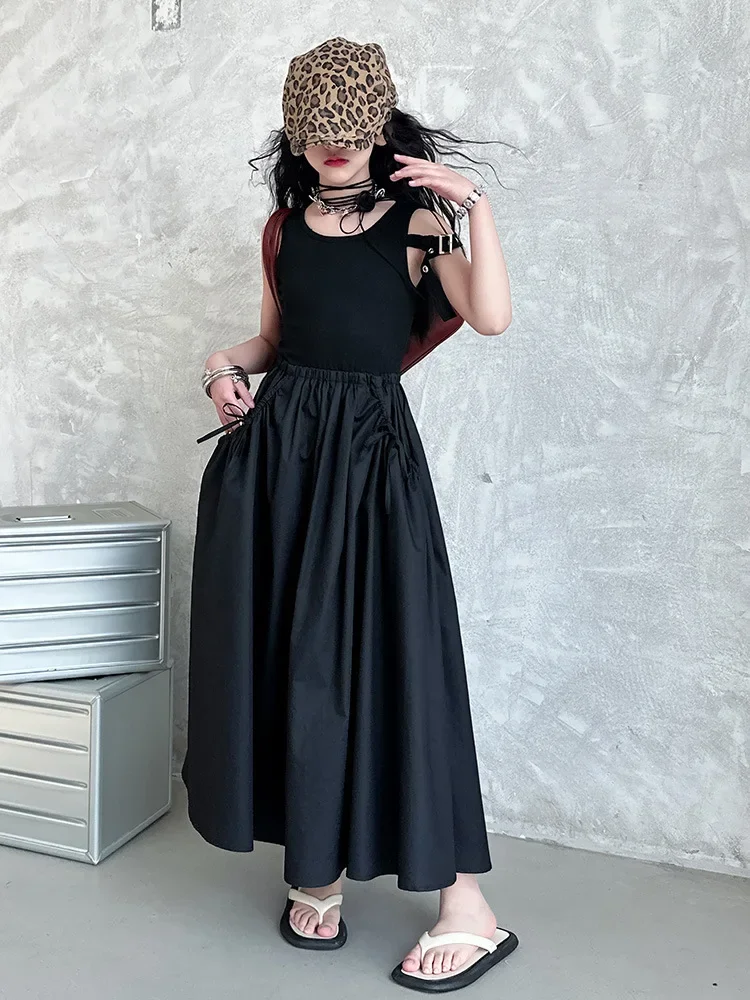 فستان صيفي عصري للفتيات بدون أكمام فستان عطلة ملابس أطفال تنورة يومية غير رسمية فستان عصري للأطفال