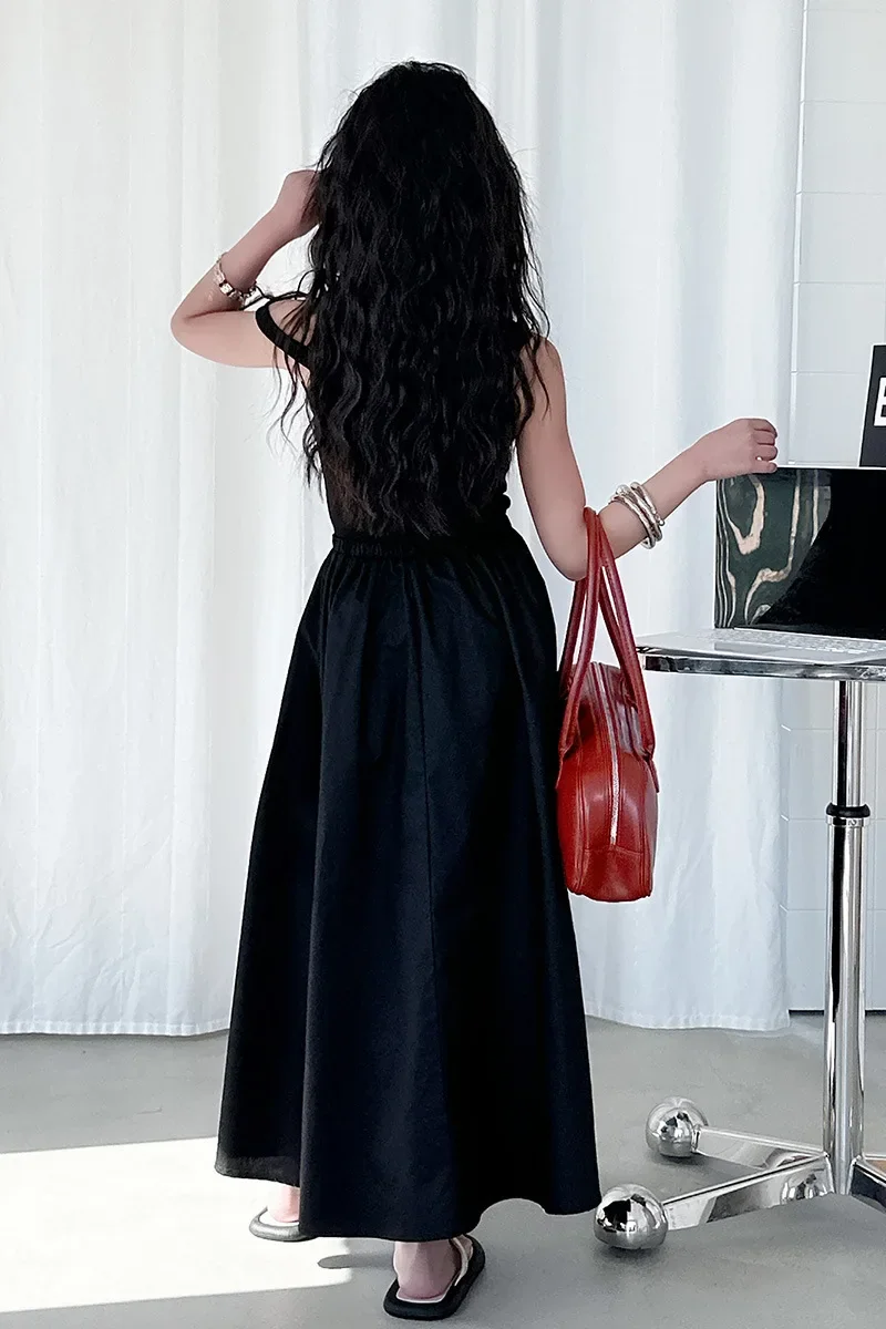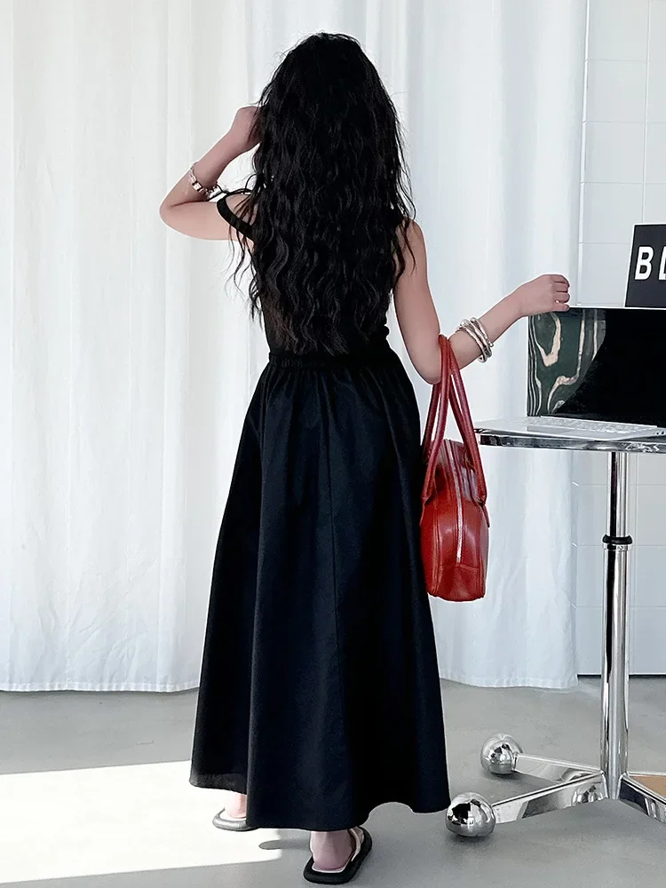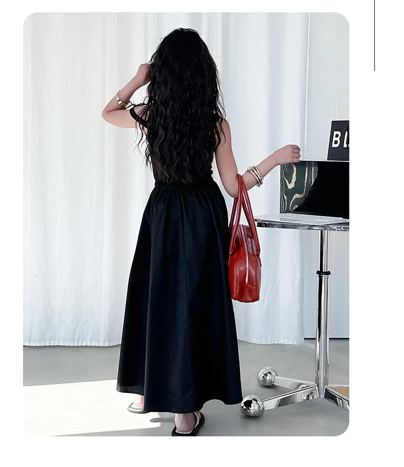 الفتيات الصيف الفرنسية خمر محبوك الخصر مقصوص تصميم طويل سترة دون أكمام فستان ملابس الأطفال لباس غير رسمي