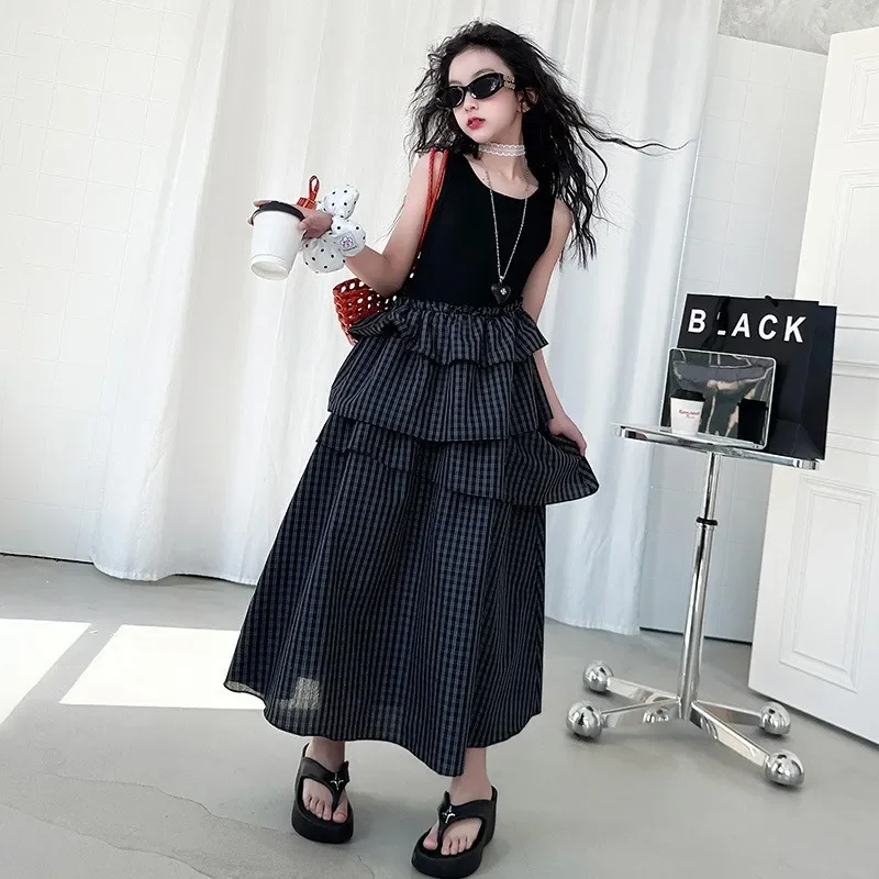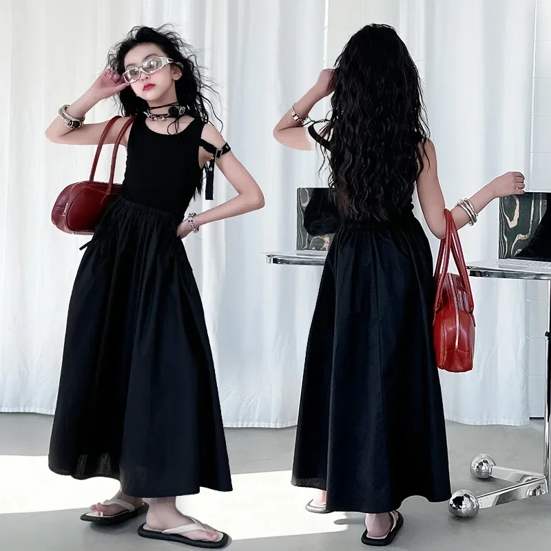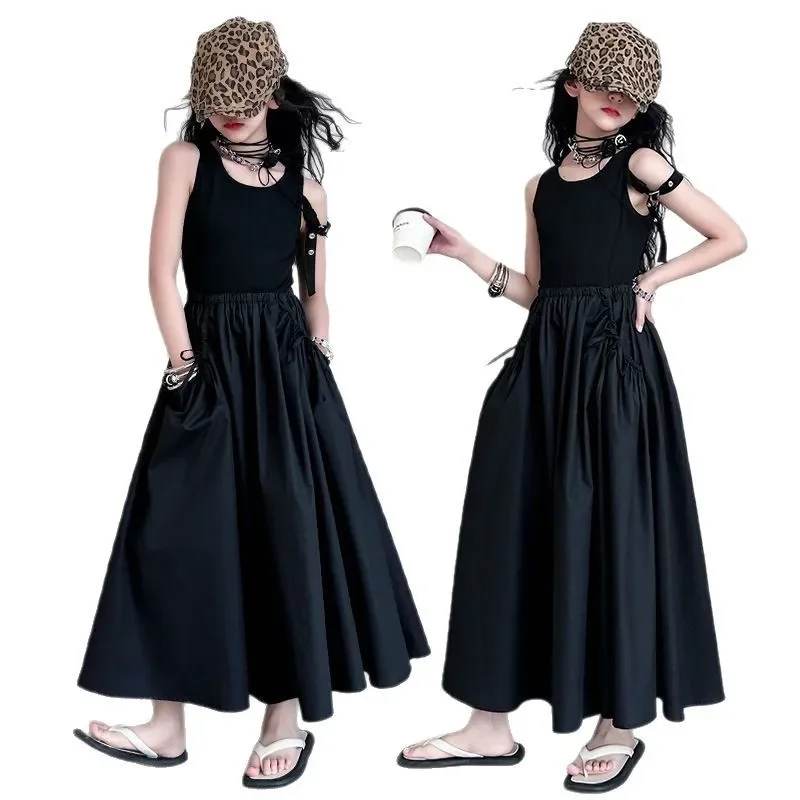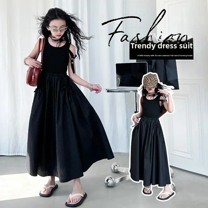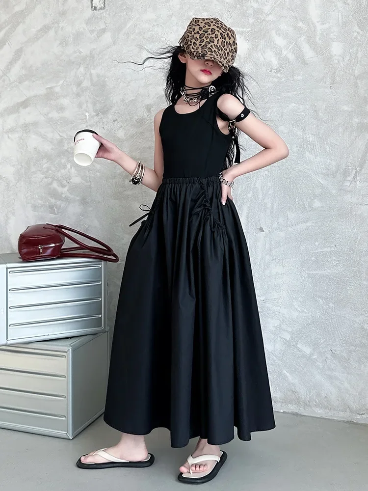 فستان صيفي عصري للفتيات بدون أكمام فستان عطلة ملابس أطفال تنورة يومية غير رسمية فستان عصري للأطفال
