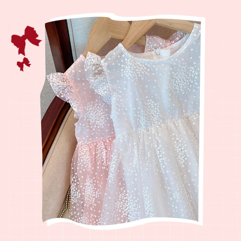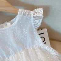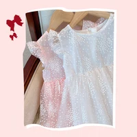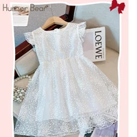 الفكاهة الدب الفتيات فستان الأميرة بلا أكمام الأبيض النقي منتفخ فستان من الشاش أجنحة الفراشة ملابس أطفال عادية 2-6 Y