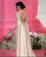 تخصيص حزب أثواب المشاهير أكمام فساتين السهرة الرقبة العالية المحدبة الطابق طول مطوي فساتين السهرة عارية الذراعين