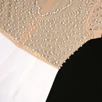 س العنق أكمام قصيرة مطرز بالخرز عالية الخصر بذلة السروال القصير للنساء ، وزرة أنيقة للإناث ، الزي الفاخر لحفل العشاء ، حفل العشاء