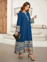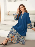 قفطان دبي عباية فستان للنساء عيد 2025 طباعة قفطان مغربي إسلامي شريط ماسي رقبة على شكل V جلابية عبايات بنية ثوب عربي