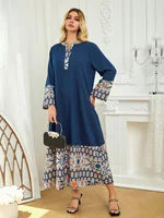 عباية فستان طويل مع فتحة رقبة دائرية تتميز بزخرفة دانتيل عاكسة اتجاهية وأكمام طويلة أنيقة وفضفاضة
