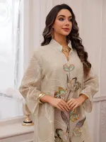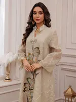 عباية إسلامية فاخرة جديدة مستوحاة من دبي 2025 مطرزة على شكل زهرة ترتر رائعة على نمط أوراق الشجر للمناسبات الاجتماعية في الشرق الأوسط
