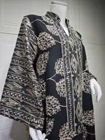 فستان نسائي أنيق أنيق مطبوع برقبة على شكل حرف v فستان أسود عتيق للسيدات على شكل حرف a فستان متوسط الخصر مطاطي وأكمام قصيرة فستان بوهو