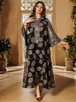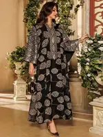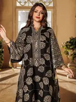 جلابية مطرزة باللون الأسود للنساء المسلمات مع تفاصيل ذهبية