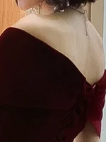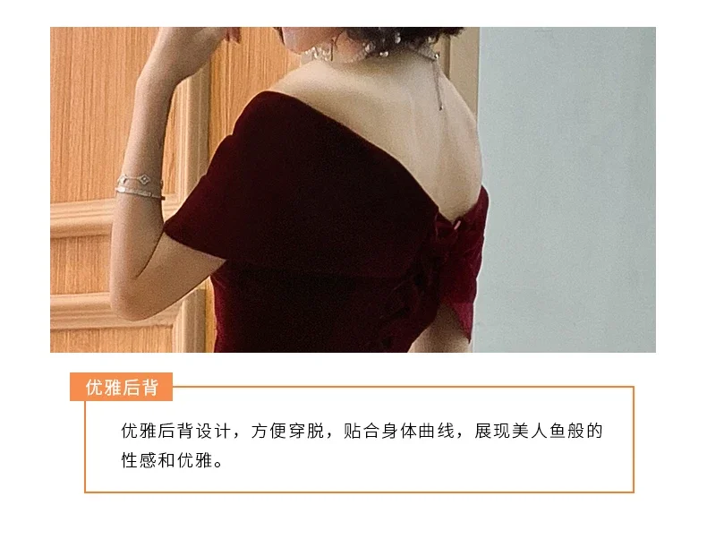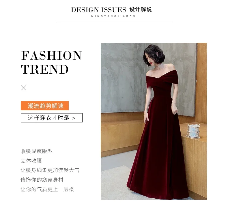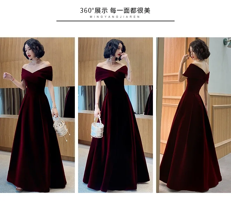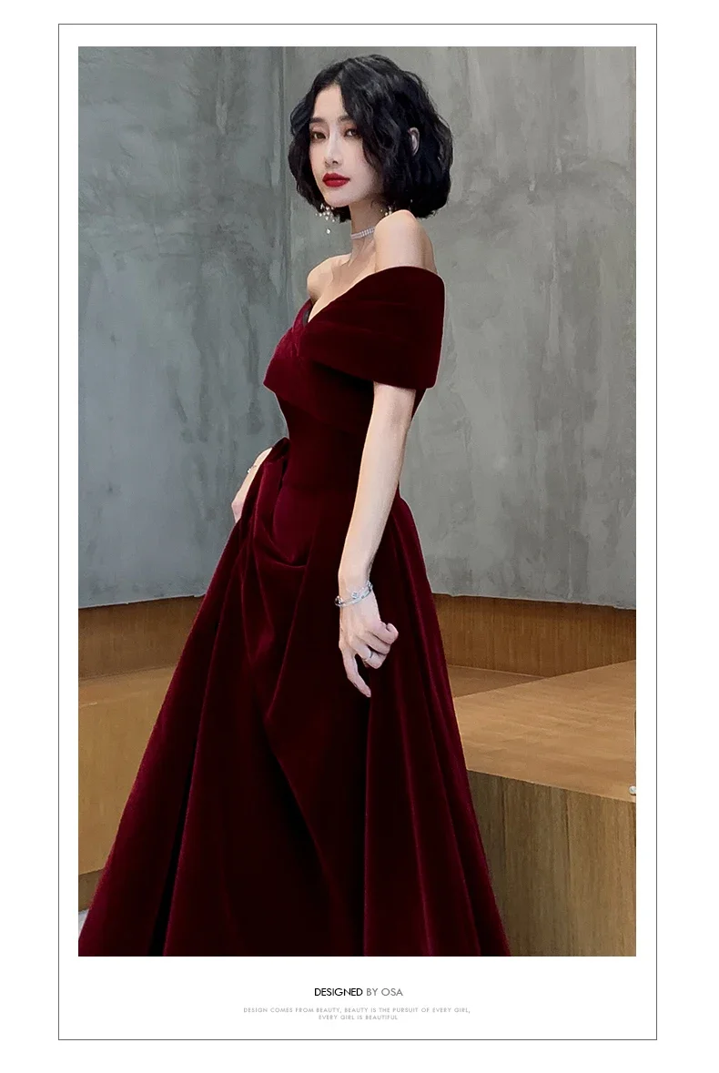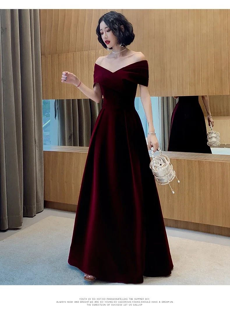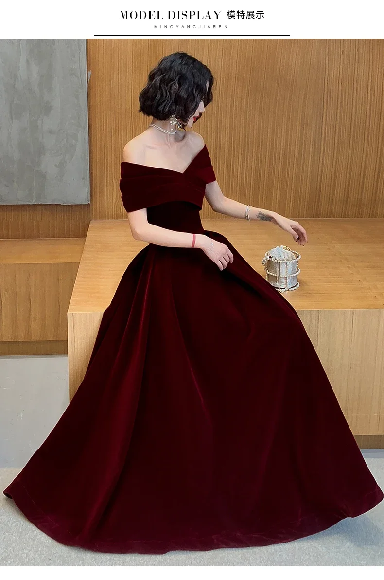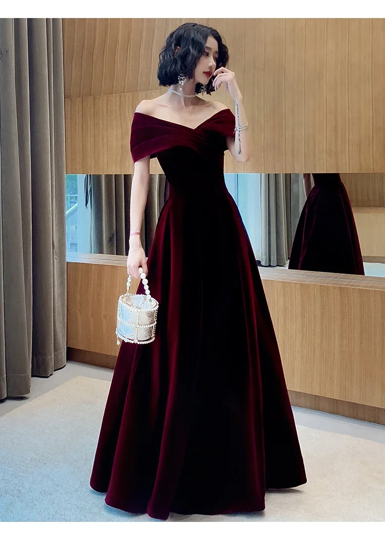 فساتين ربيعية طويلة فاخرة أنيقة باللون الأحمر الخمري الناعم المخملي لحفلات الزفاف للنساء بدون أكتاف فستان ماكسي