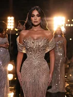 فساتين سهرة لامعة مخصصة لؤلؤة ترتر حورية البحر فساتين حفلات قبالة الكتف انظر من خلال فساتين الحفلات