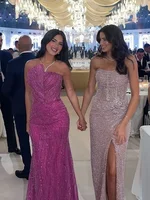 فساتين سهرة مخصصة عالية الجودة أنيقة عتيقة حلوة مثيرة وردية حورية البحر الخرز الدانتيل مناسبة رسمية فستان طويل التألق