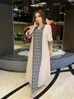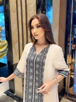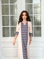 فستان قفطان مطرز فاخر للنساء، فستان جلابية فضفاض متواضع مع رقبة مطرزة يدويًا لعيد رمضان دبي السعودية