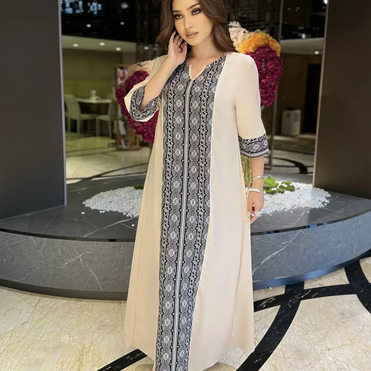 فساتين ماكسي إسلامية للنساء فستان حجاب أنيق للنساء مطبوع فساتين أيااباس نصف كم