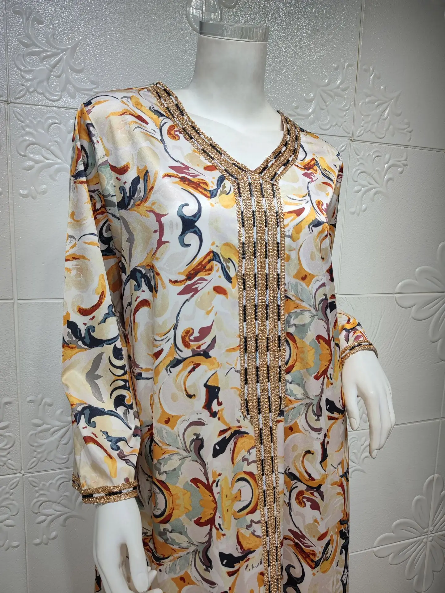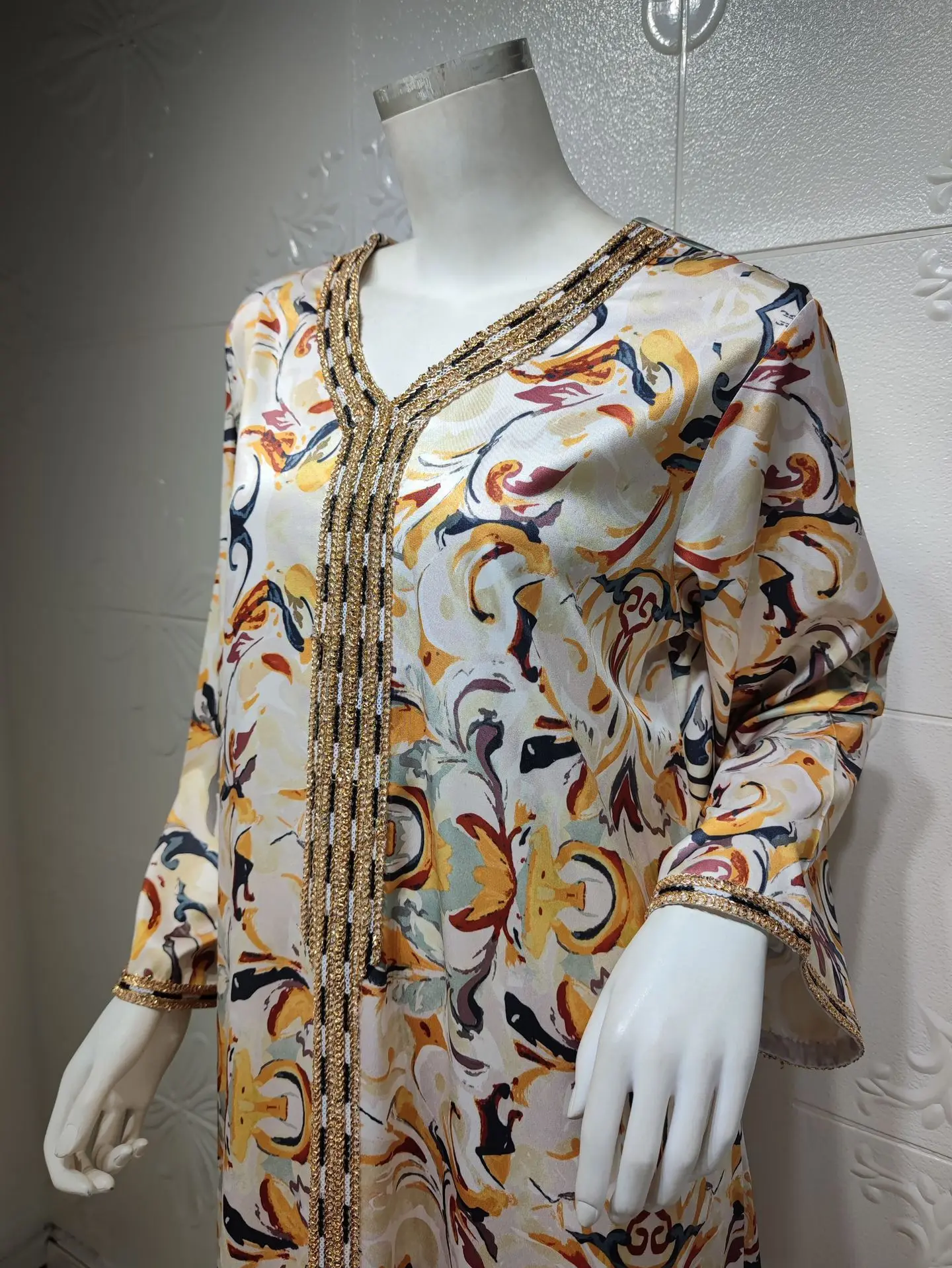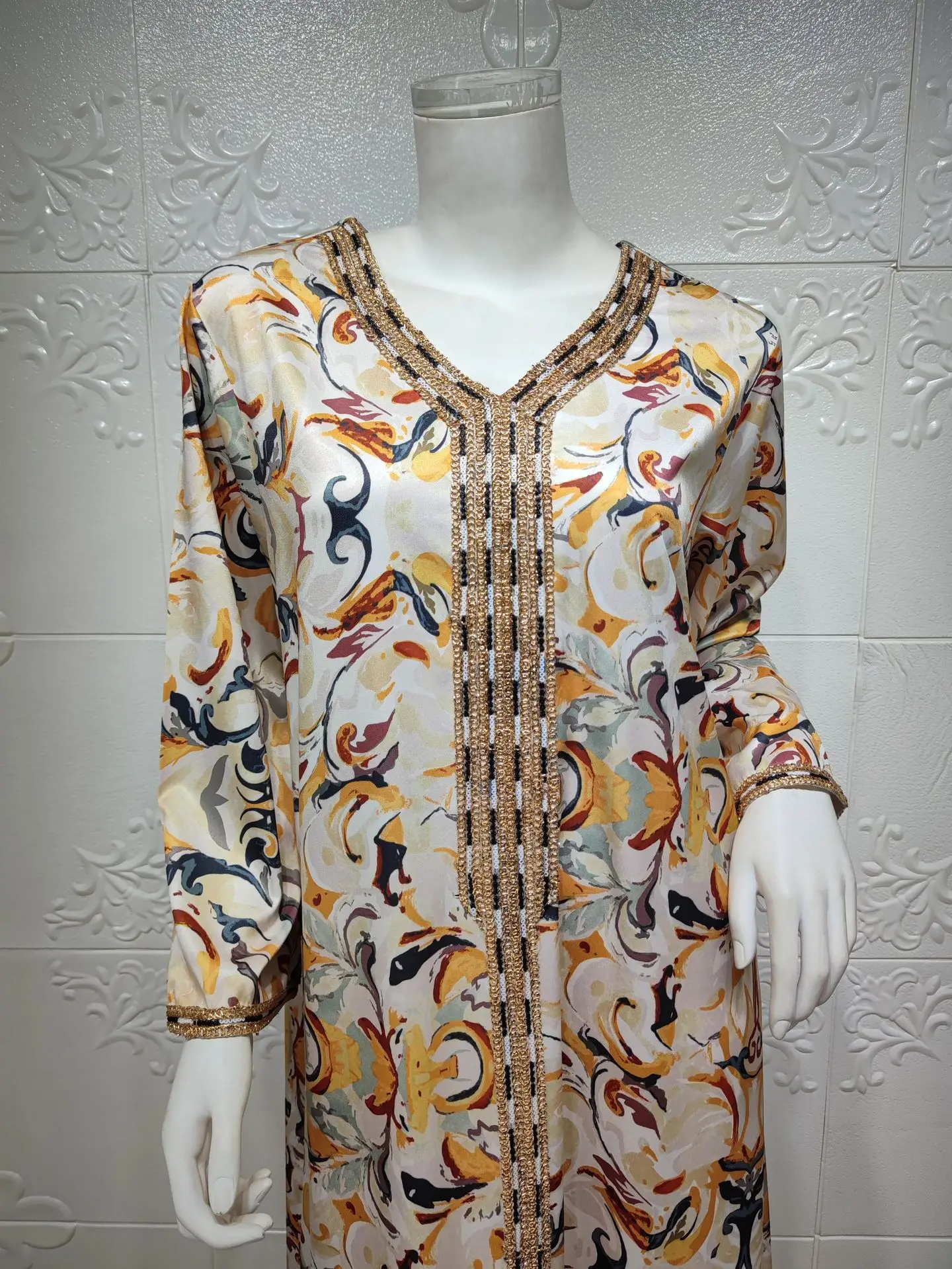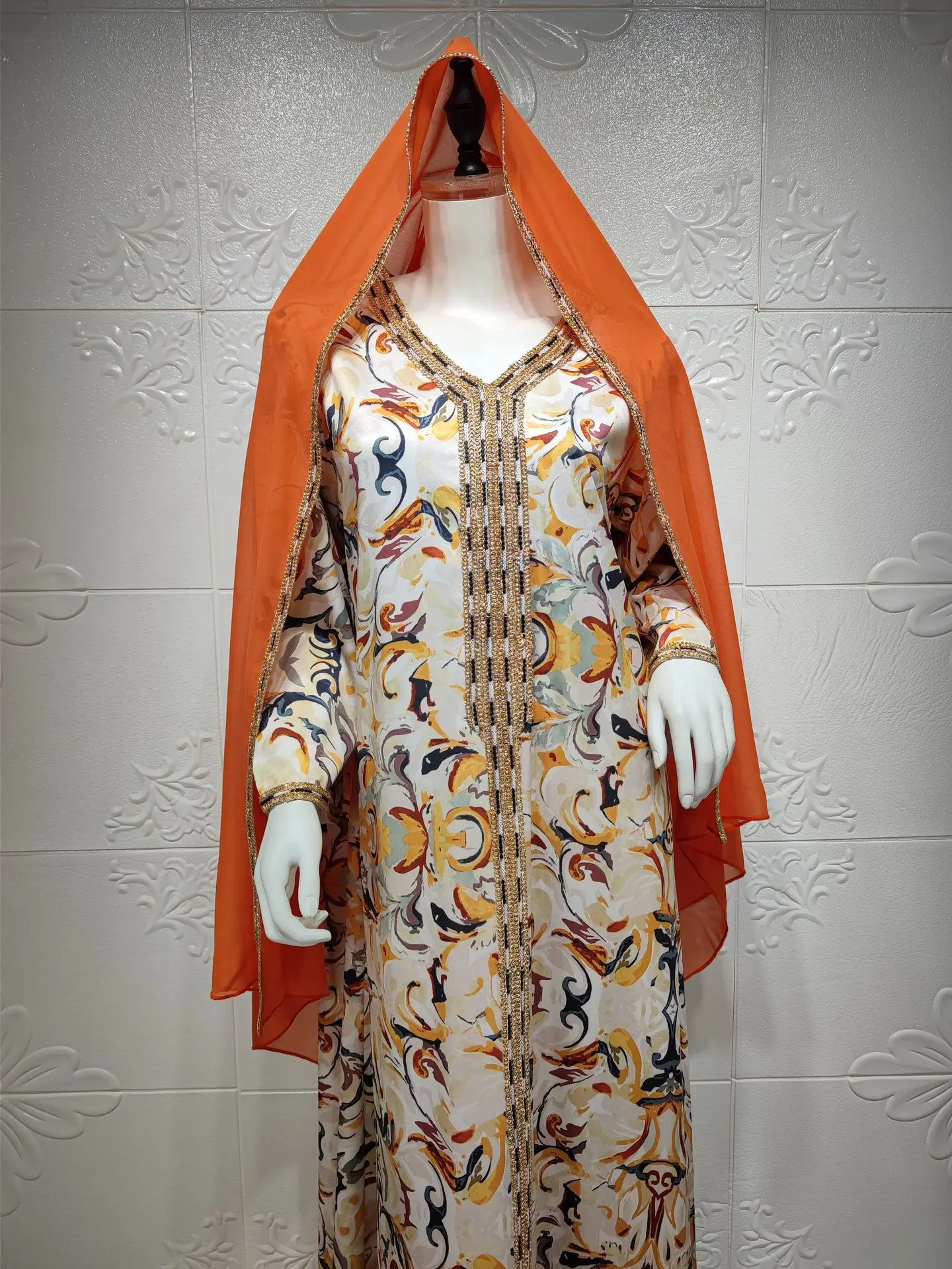 فستان إسلامي بنقشة ورود أنيق للسيدات عباية عربية دبي عربية تركي مغربي قفطان ملابس إسلامية الهند رداء