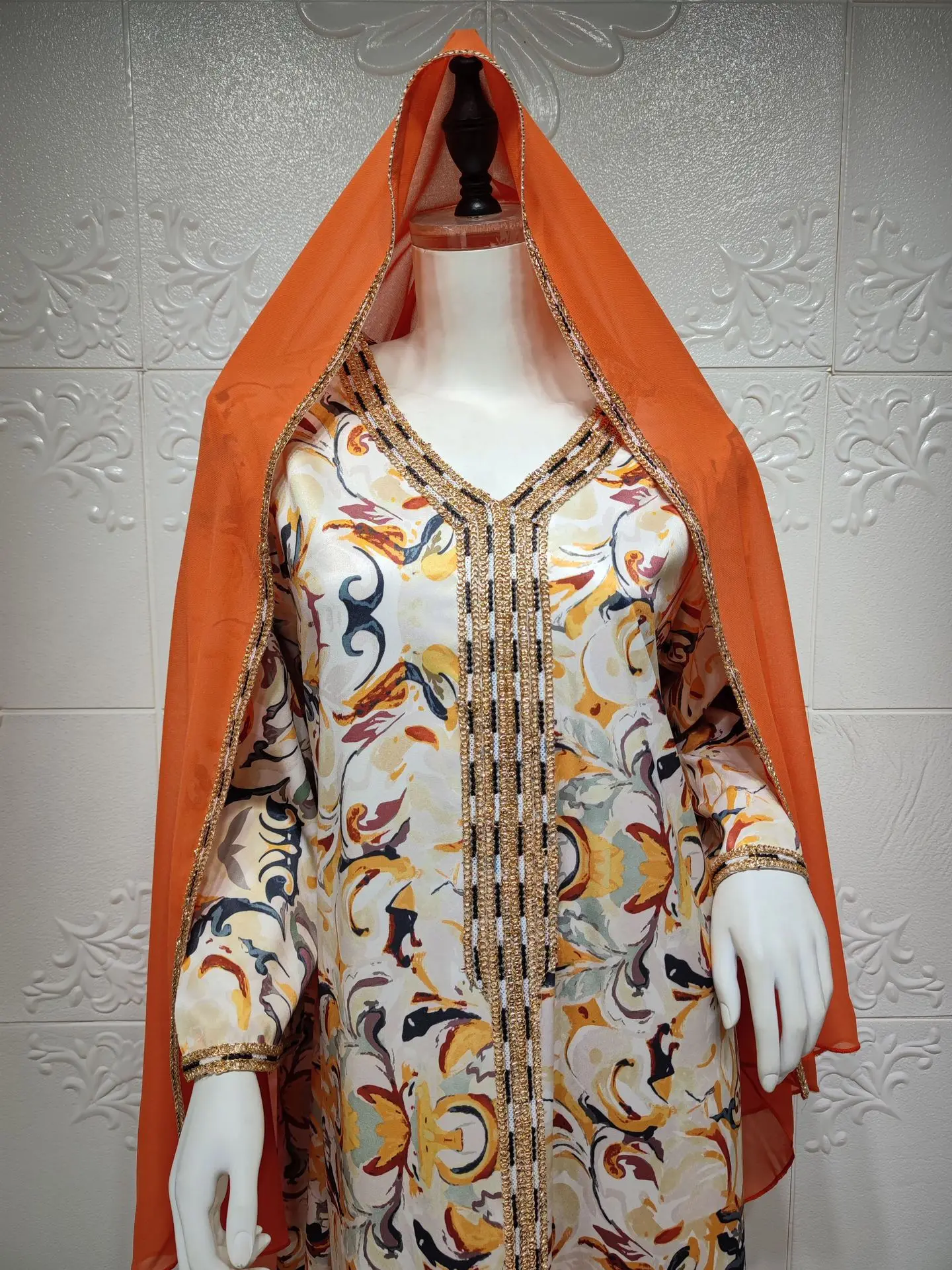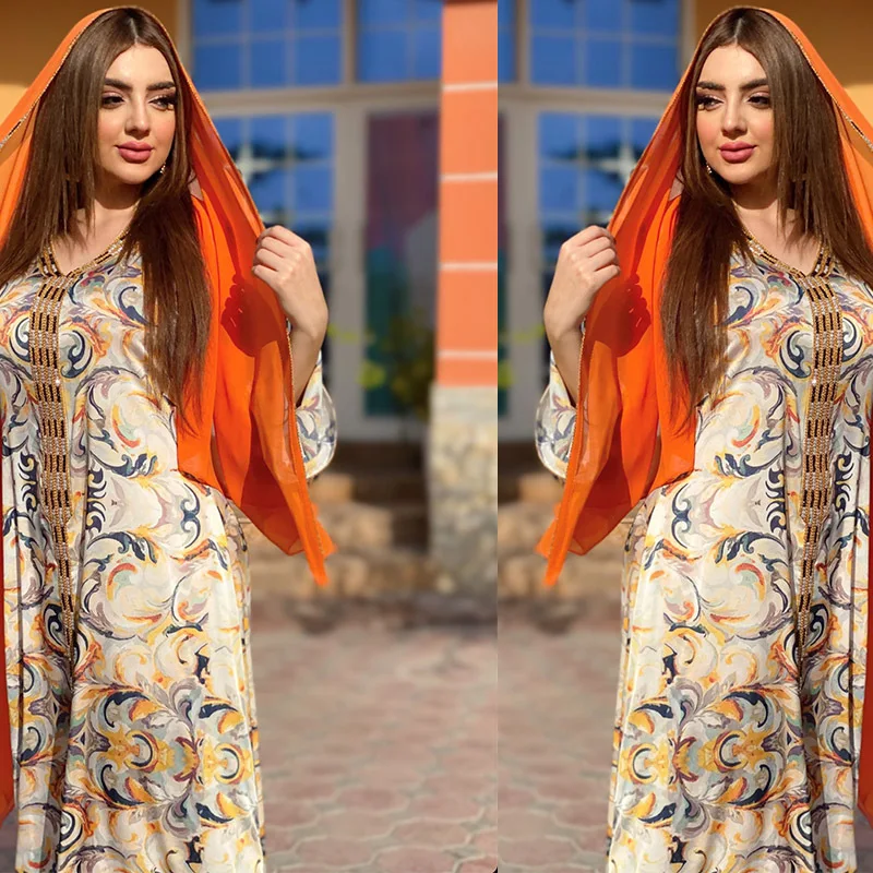 فساتين ماكسي إسلامية للنساء فستان حجاب أنيق للنساء مطبوع فساتين أيااباس نصف كم