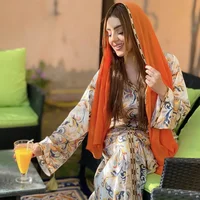 فستان إسلامي بنقشة ورود أنيق للسيدات عباية عربية دبي عربية تركي مغربي قفطان ملابس إسلامية الهند رداء