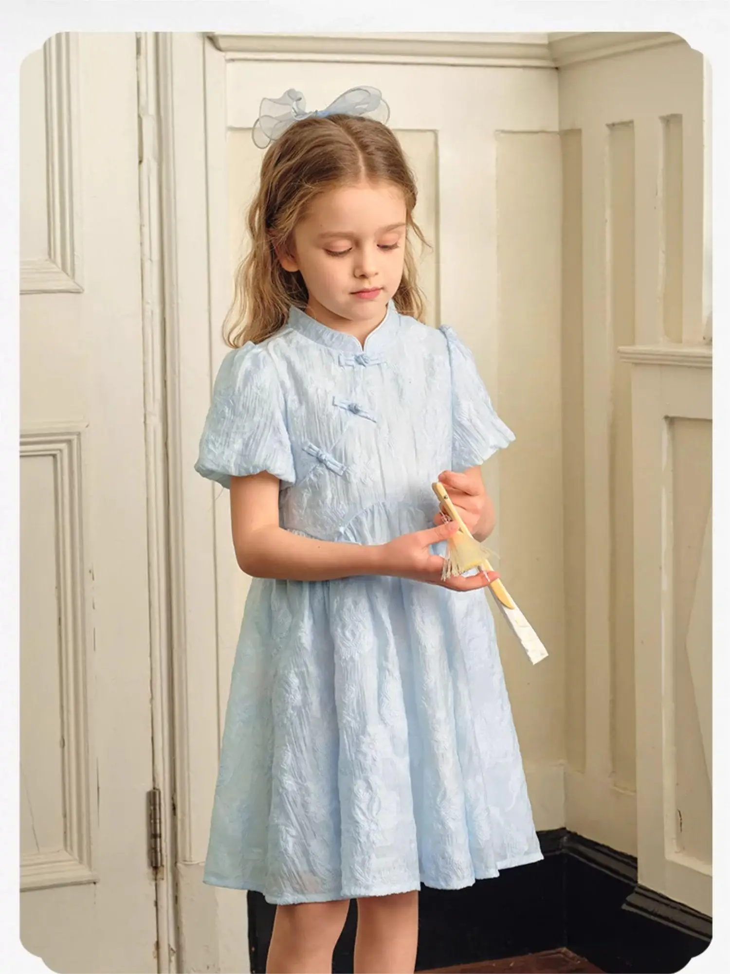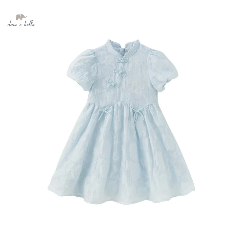 فستان الأميرة للفتيات من Dave Bella 2025 فستان صيفي جديد للأطفال على شكل حرف a وأكمام منتفخة ساحر موضة حلوة غير رسمية للحفلات DK 2240150