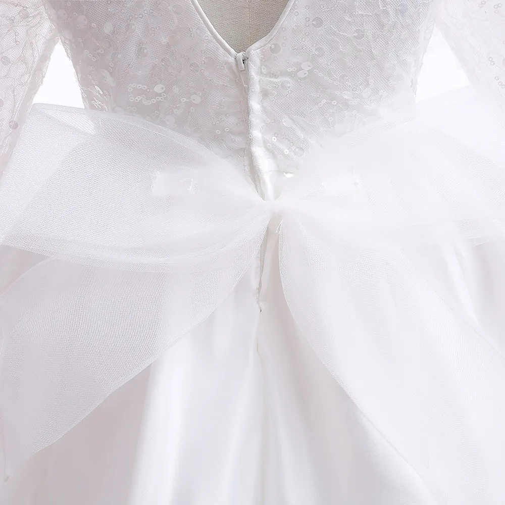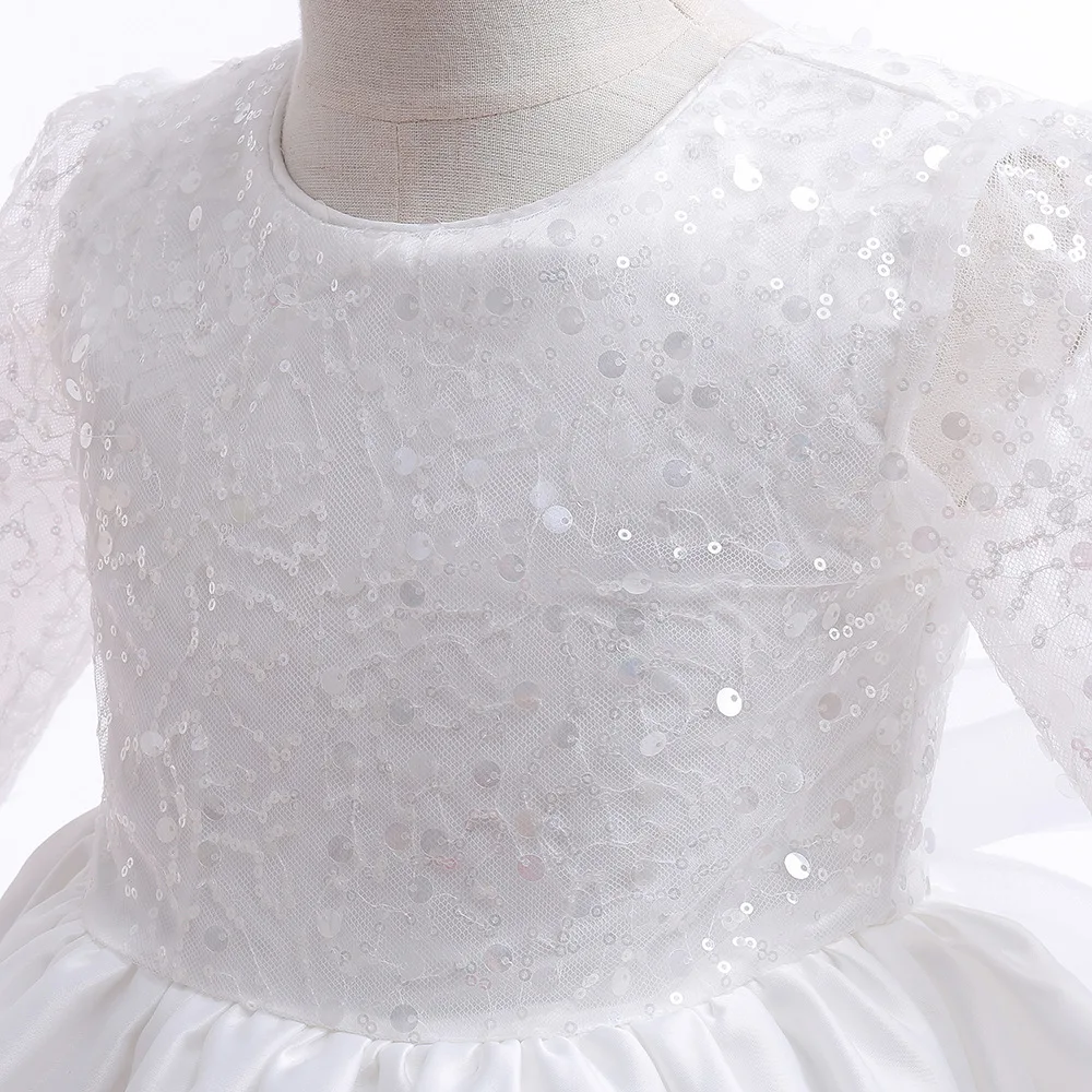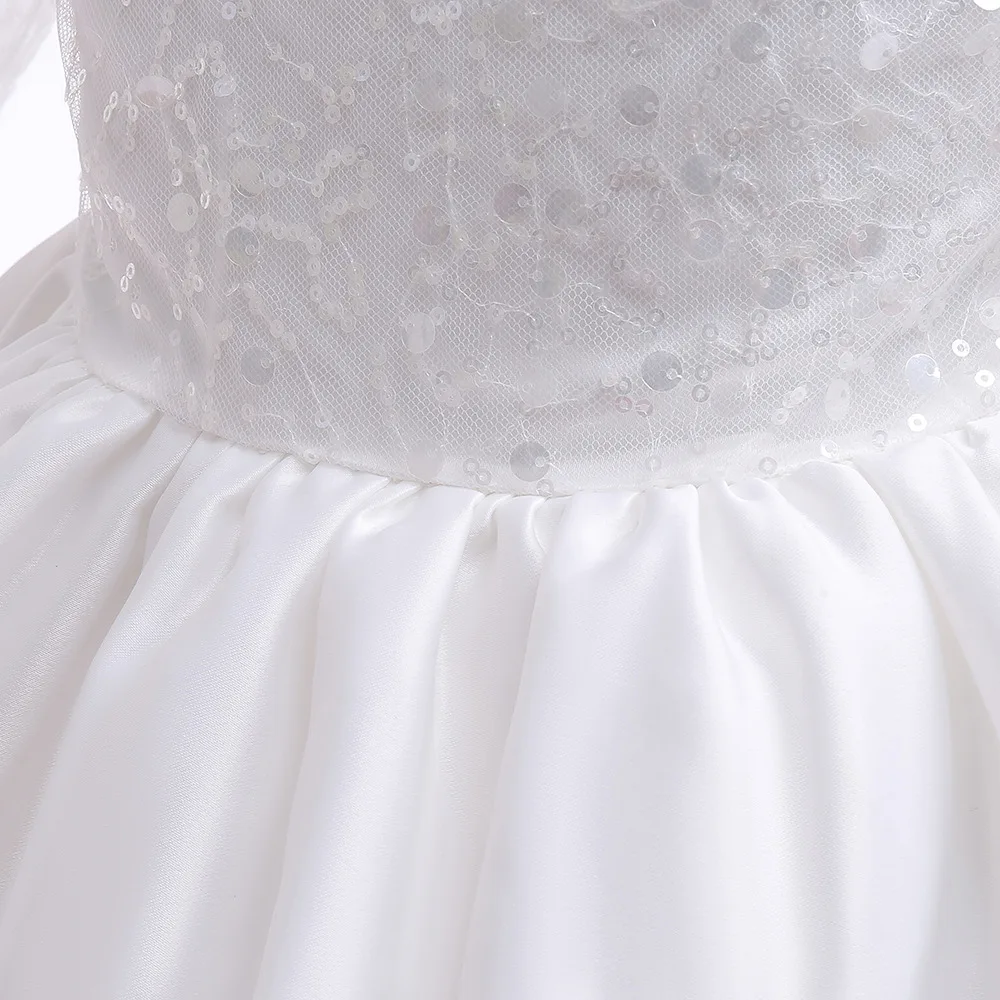 فستان بناتي أبيض فستان تعميد للأطفال الصغار فستان وصيفة العروس لحفلات الزفاف بدون ظهر من التل فستان أنيق لأداء البيانو للفتيات