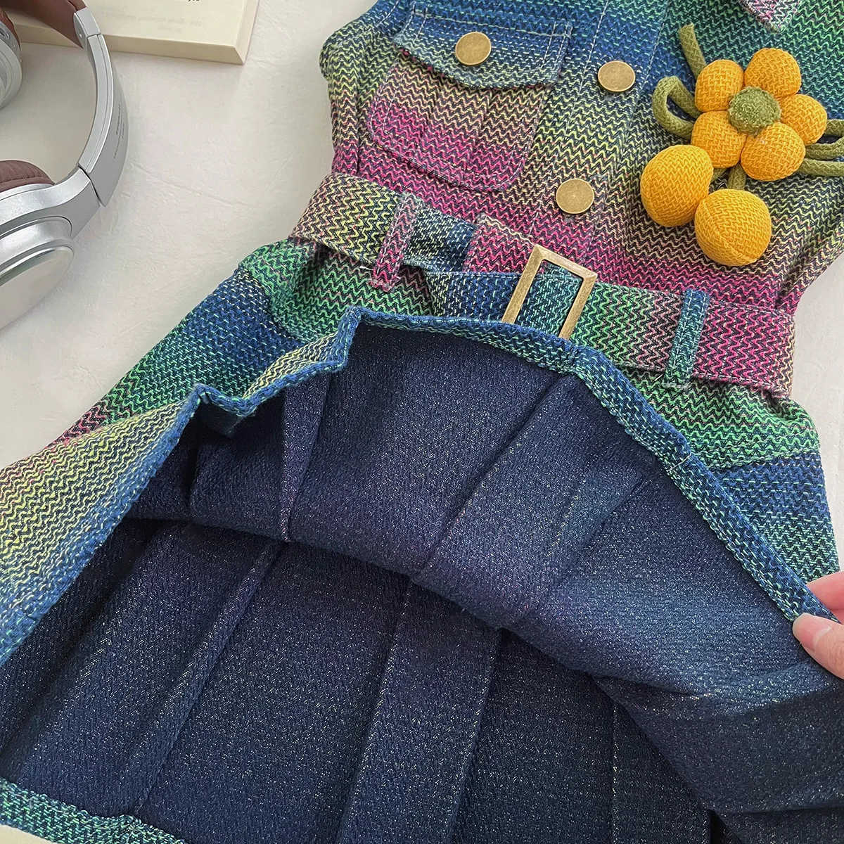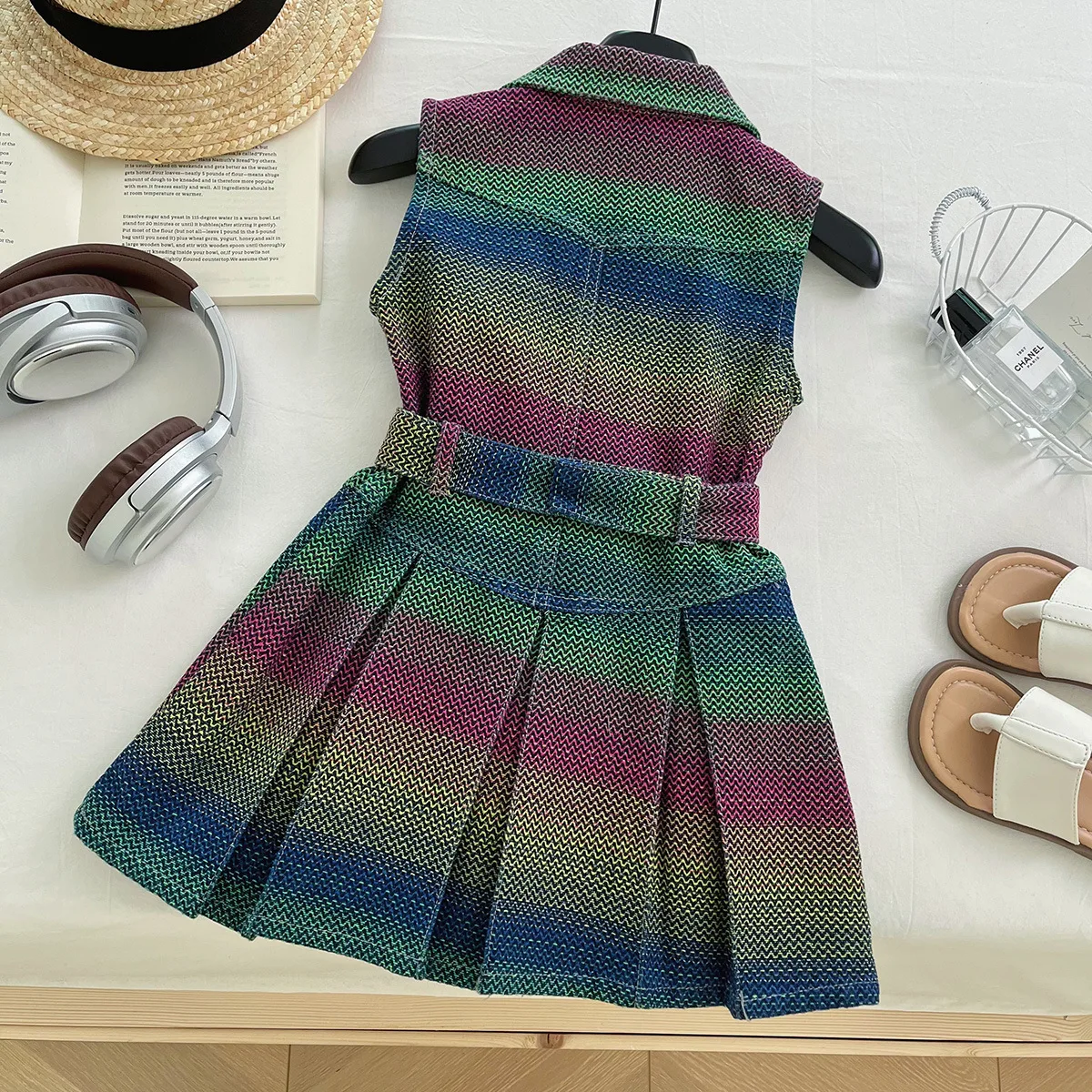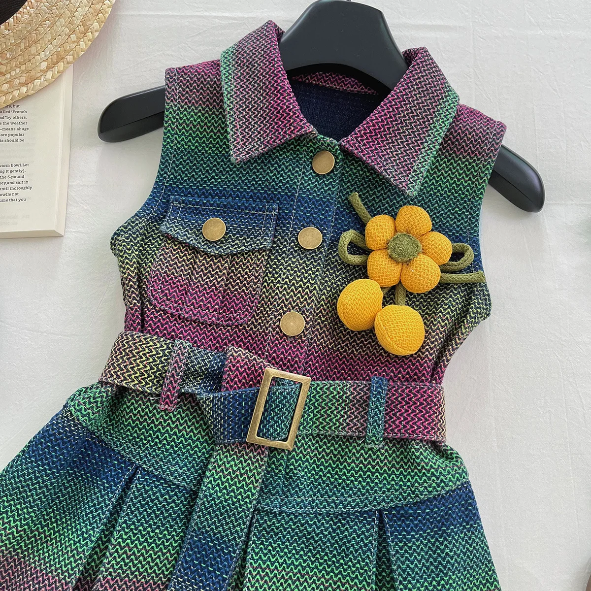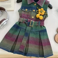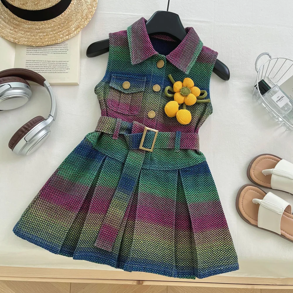 فستان بناتي بدون أكمام من قماش الدنيم 2025 فستان جديد للفتيات من قماش الدنيم الملون رقيق صيفي متدرج بياقة مقلوبة فستان بدون أكمام