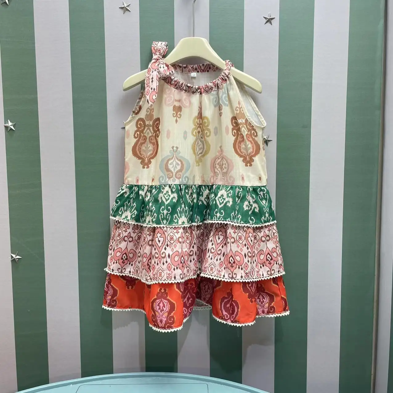 فستان بناتي صيفي جديد بتصميم كلاسيكي مطبوع على طراز المشاهير وحفلات أعياد الميلاد وحفلات الأطفال بجودة عالية