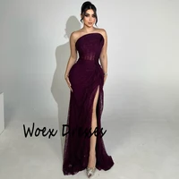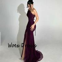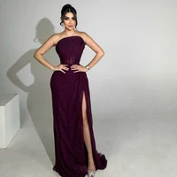 فستان سهرة من Verngo باللون الرمادي من التول بدون حمالات على شكل حرف A فستان حفلة موسيقية نسائي أنيق رسمي فساتين حفلات عربية مخصصة