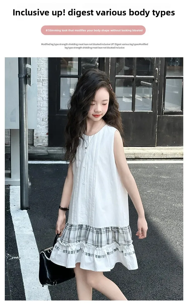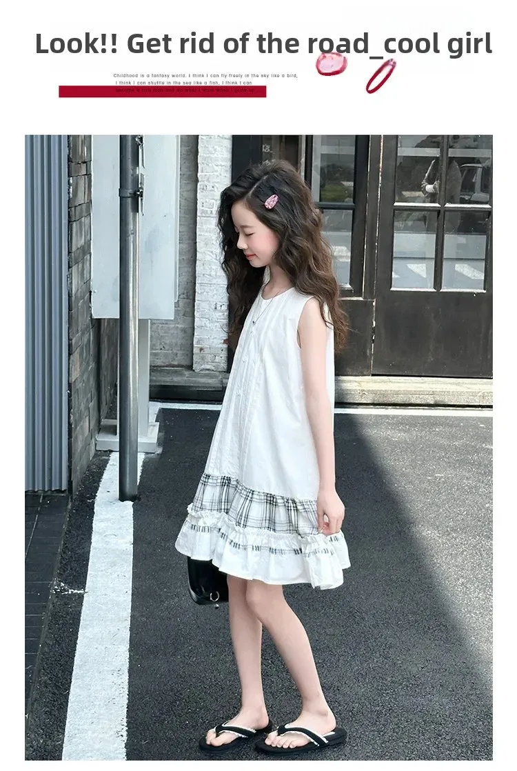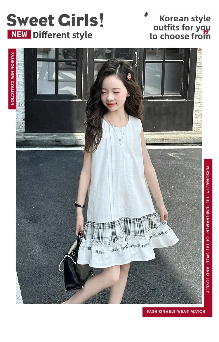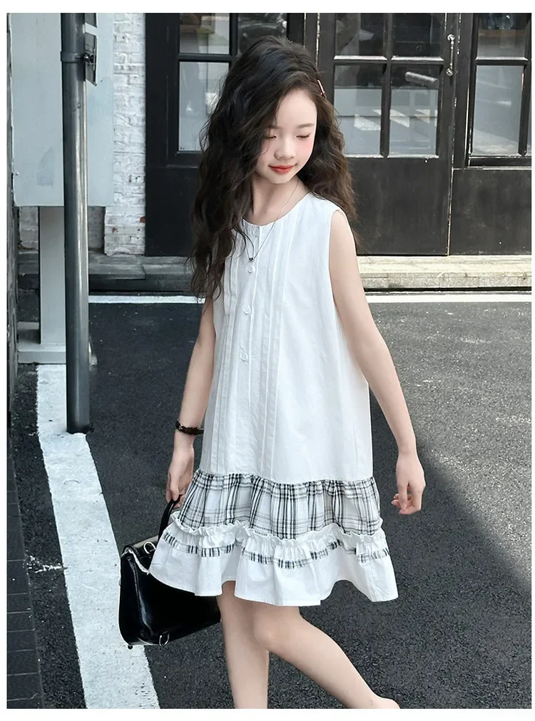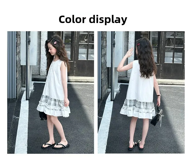 فستان صيفي عصري للفتيات بدون أكمام فستان عطلة ملابس أطفال تنورة يومية غير رسمية فستان عصري للأطفال