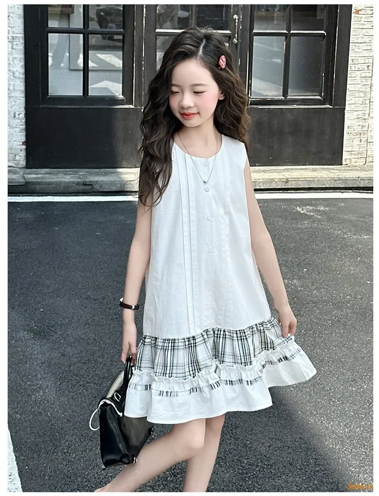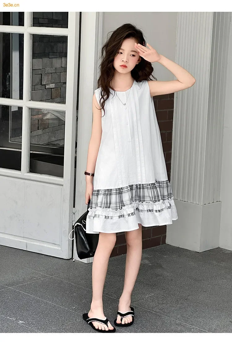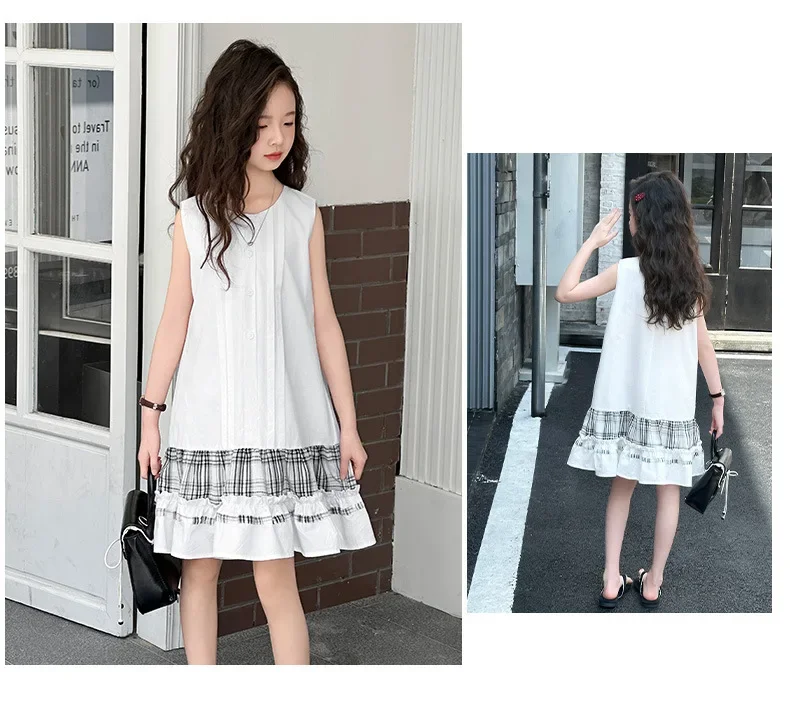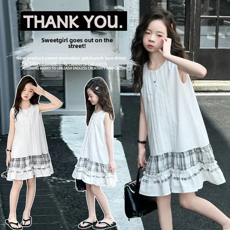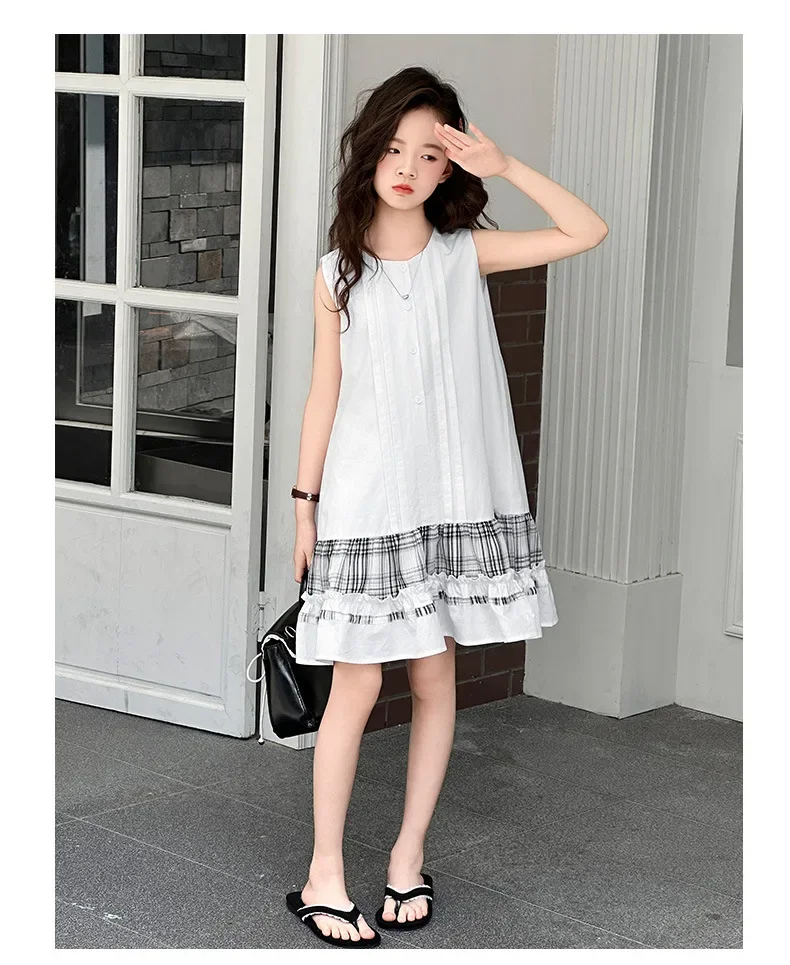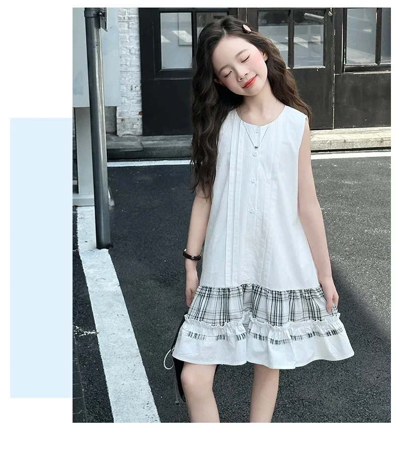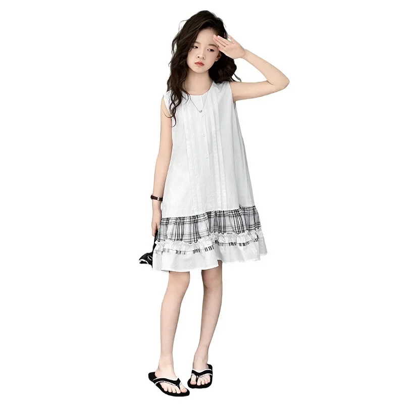 5-14Years الاطفال الصيف فساتين بلا أكمام للفتيات القطن شكرا فستان طويل المراهقين الأطفال ملابس غير رسمية الملابس 6 7 8 9 10 11