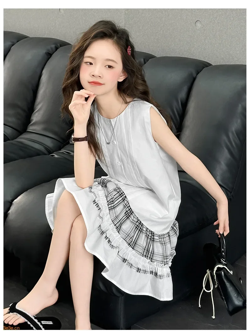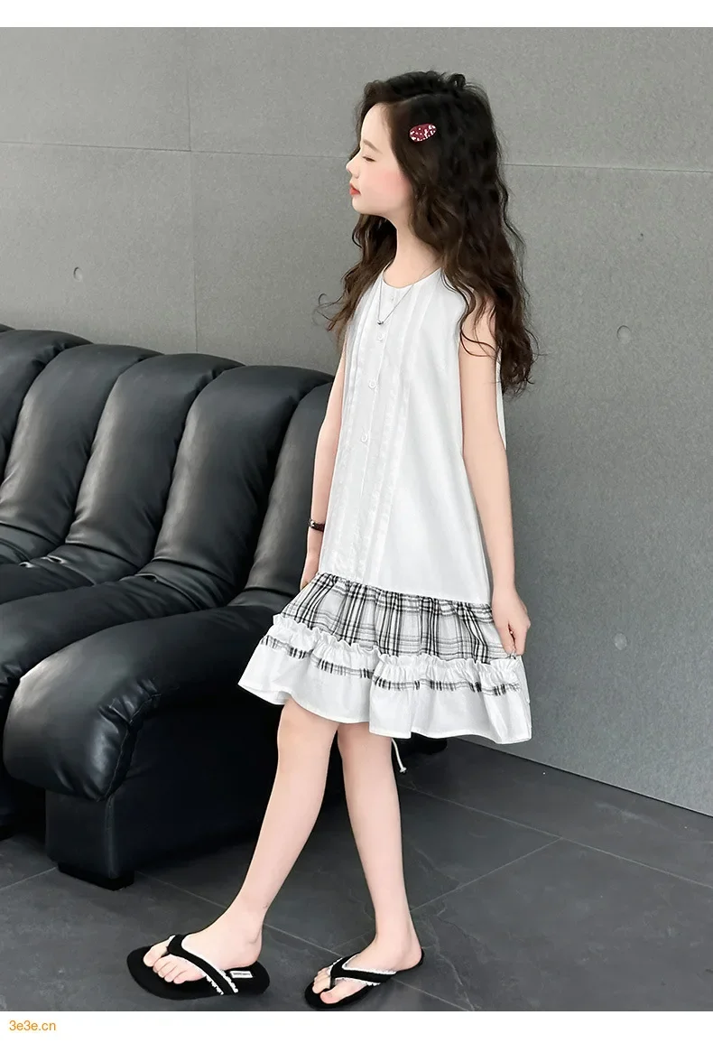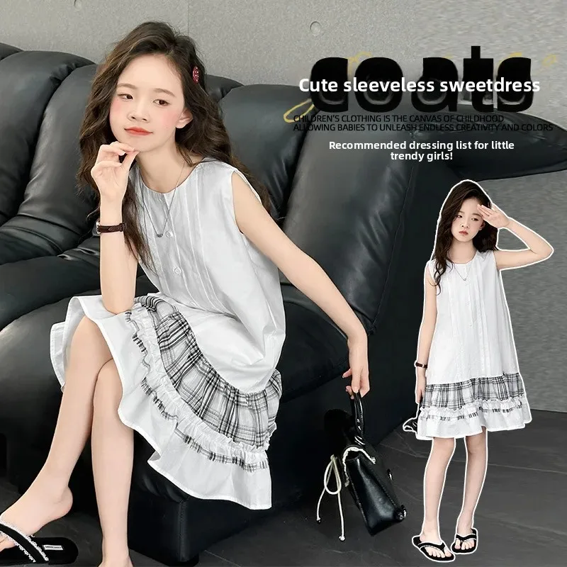 فستان الأميرة الصيفي الجديد للفتيات فستان بدون أكمام للأطفال مع فساتين بتصميم مكشكشة للأطفال في سن المراهقة فستان كاجوال لقضاء العطلات على الشاطئ