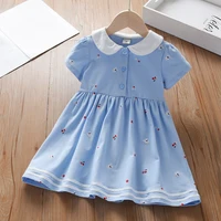 فستان صيفي للفتيات الصغيرات بأكمام قصيرة وياقة مقلوبة ملابس قطنية للفتيات من سن 2 إلى 6 سنوات فساتين أطفال