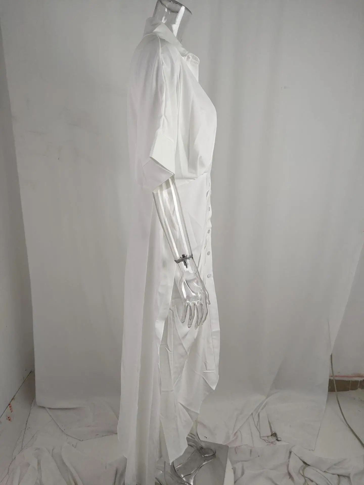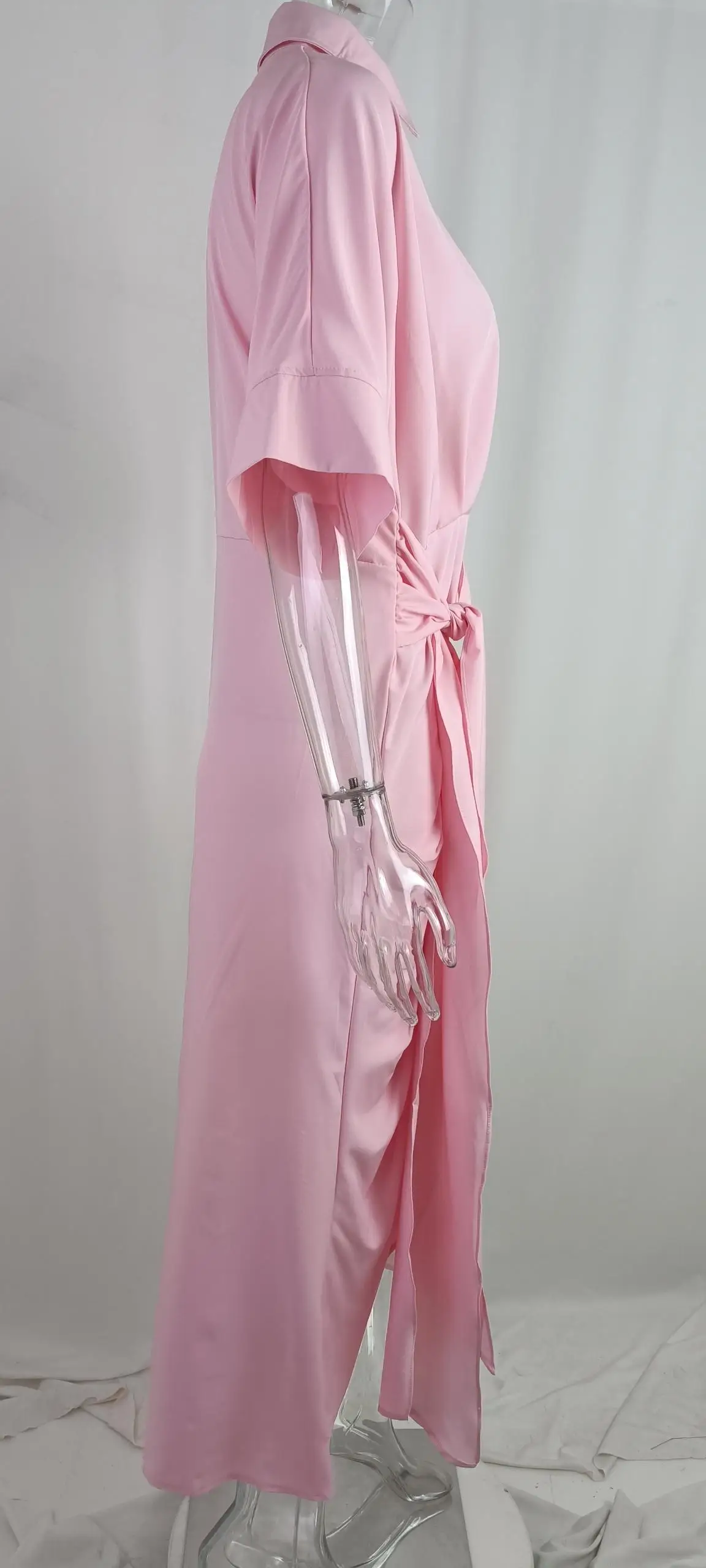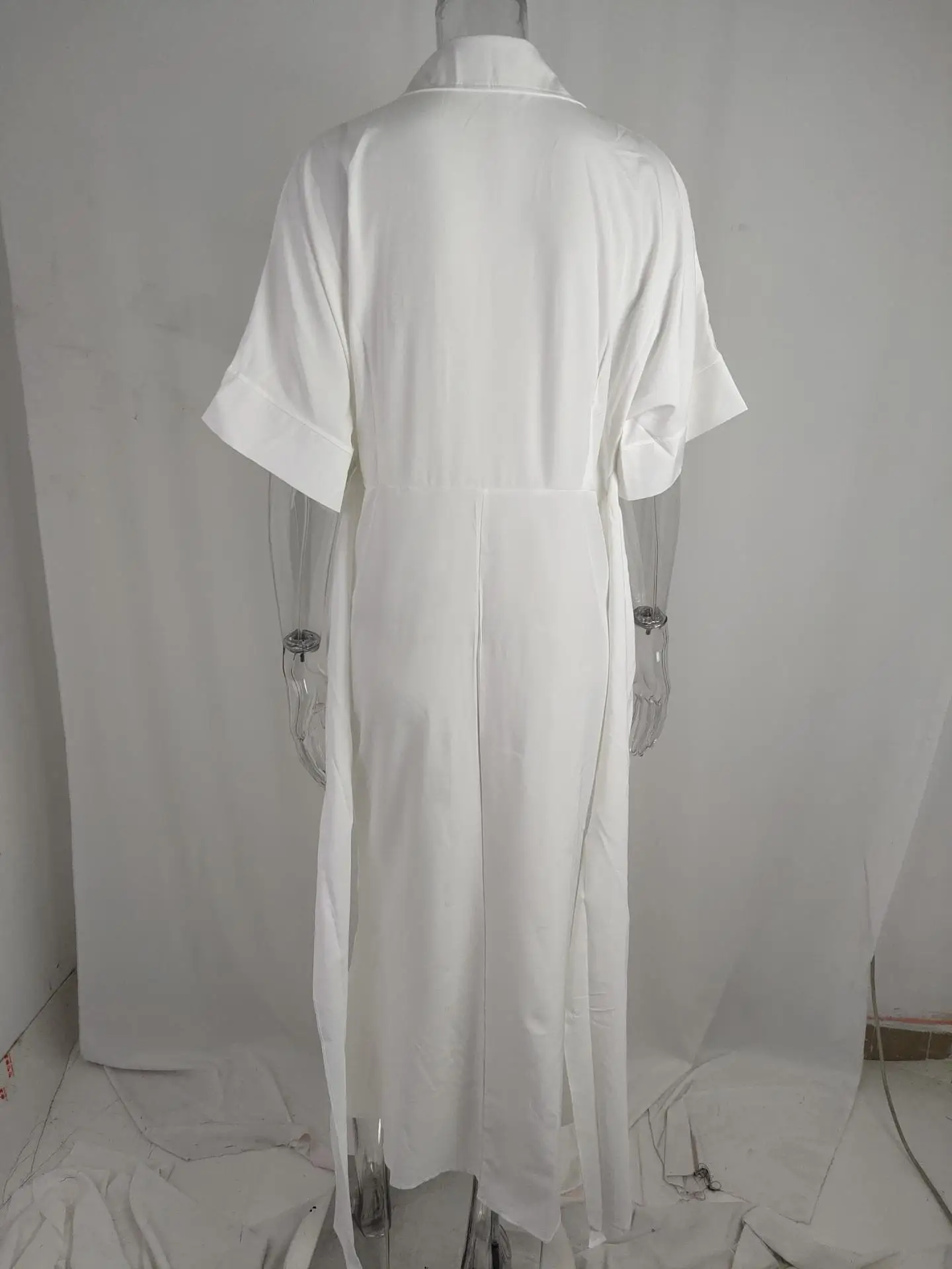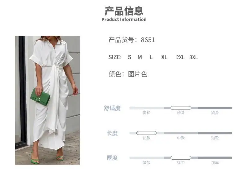فستان قميص للسيدات عالي الخصر للنساء ملابس صيف 2025 فستان نسائي كلاسيكي غير رسمي ضيق بأكمام قصيرة تنورة طويلة متينة