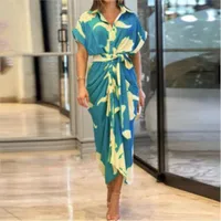 الصيف النساء الأزهار طباعة فستان طويل غير رسمي موضة الخامس الرقبة قصيرة الأكمام أنيقة مكتب الإناث الشاطئ فساتين ماكسي رداء