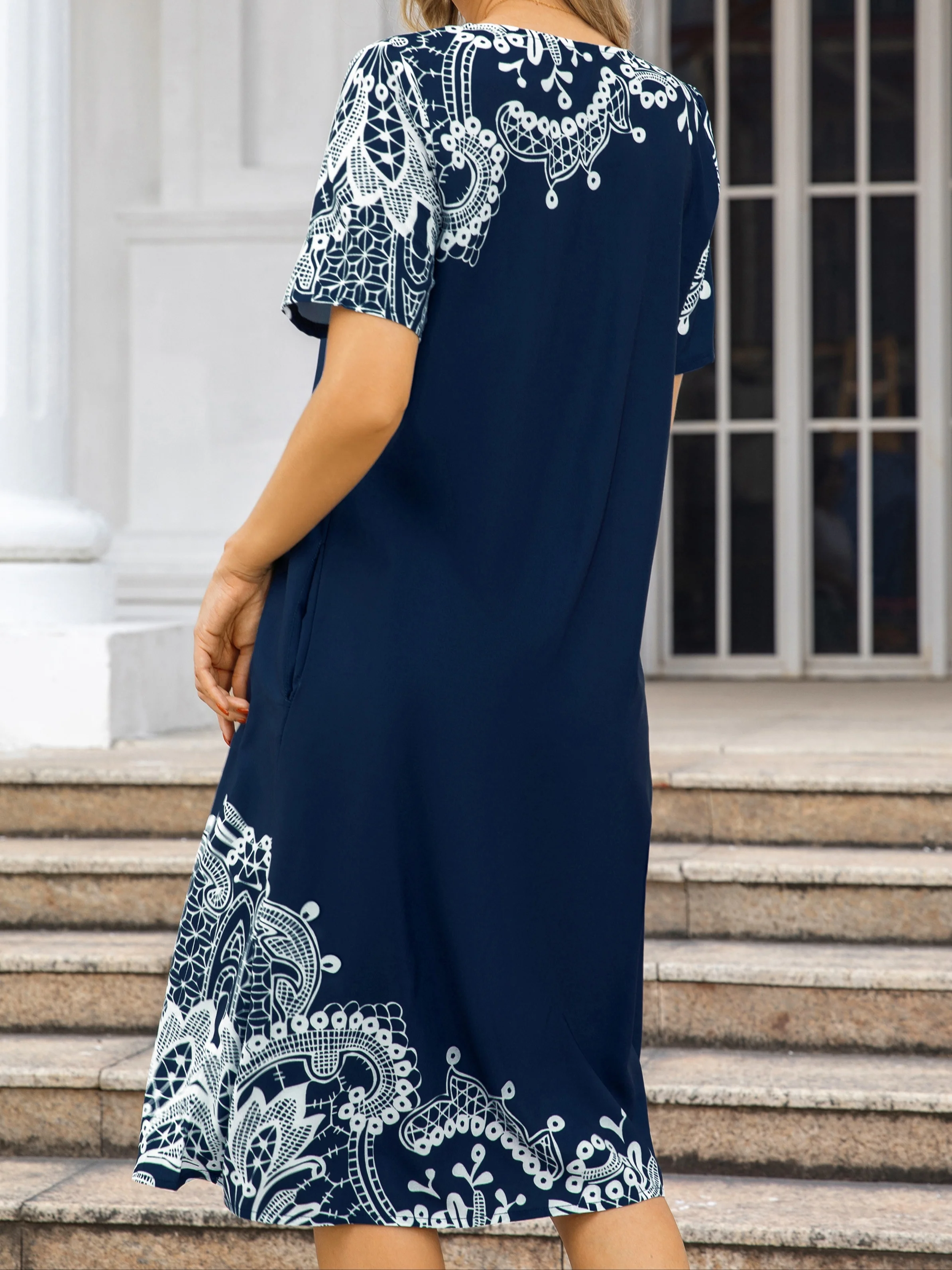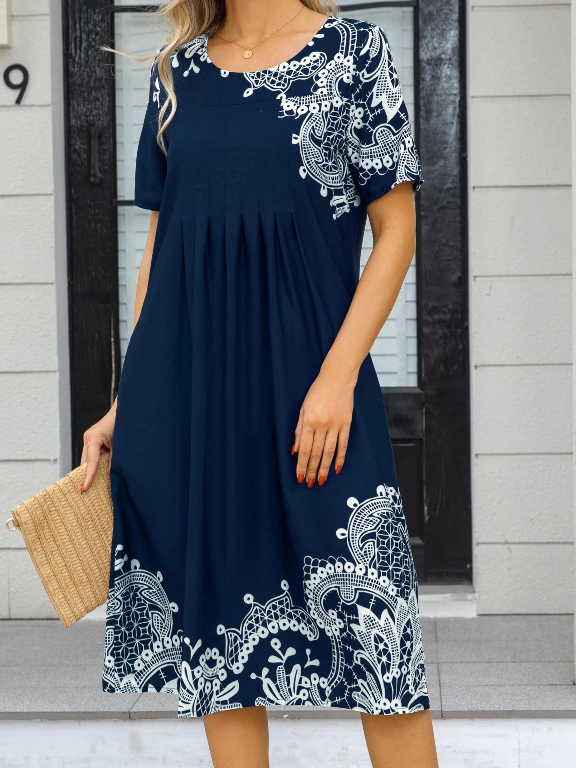 فستان نسائي أنيق فستان كاجوال فضفاض فستان نسائي مطبوع بمزاج جديد