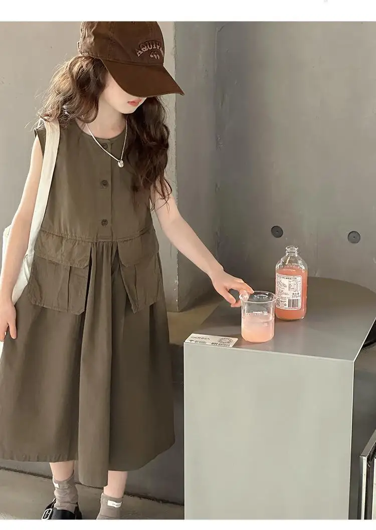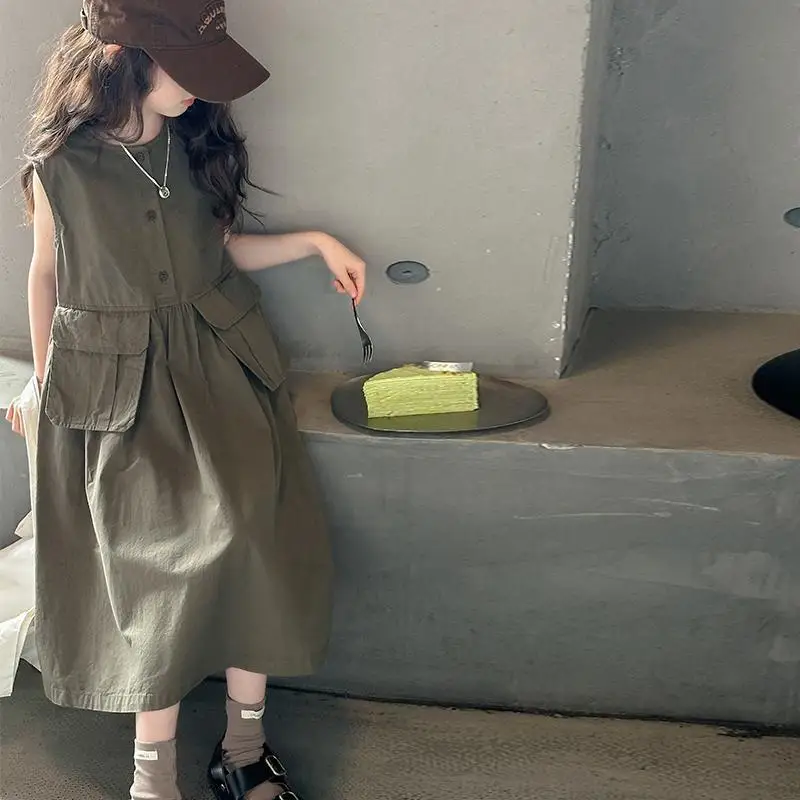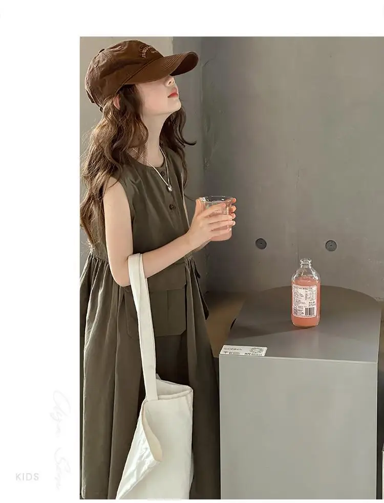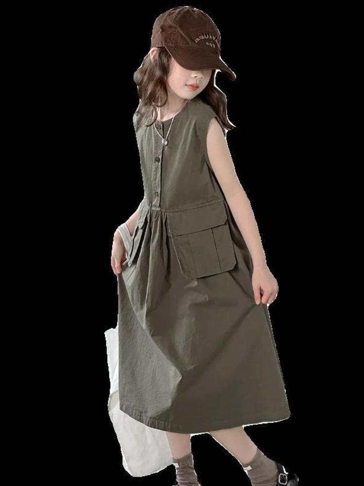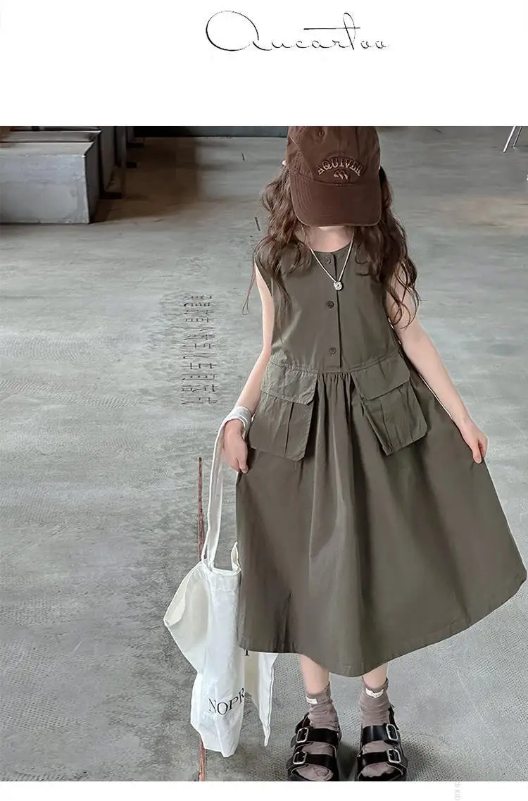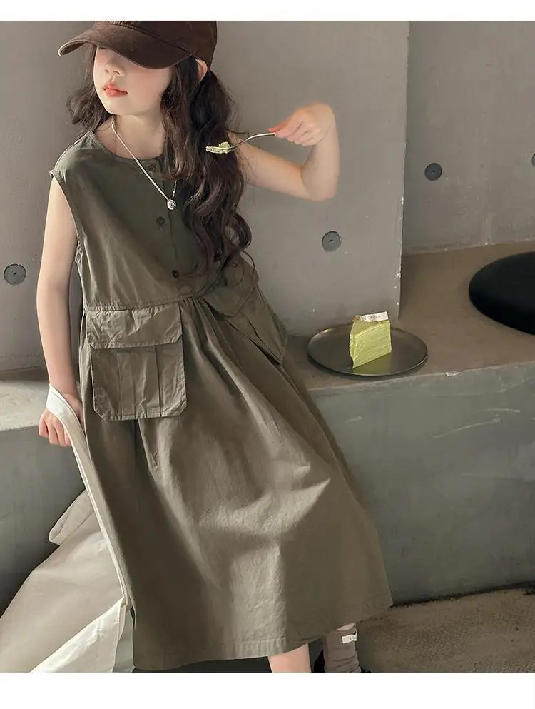 5-14Years الاطفال الصيف فساتين بلا أكمام للفتيات القطن شكرا فستان طويل المراهقين الأطفال ملابس غير رسمية الملابس 6 7 8 9 10 11