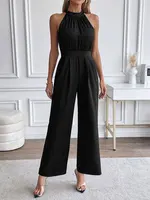 Elegant Women’s Jumpsuits 2025 Summer Simple Casual V-neck Lace Up Loose Lady Fashion Wide Leg Jumpsuit S-XXXL